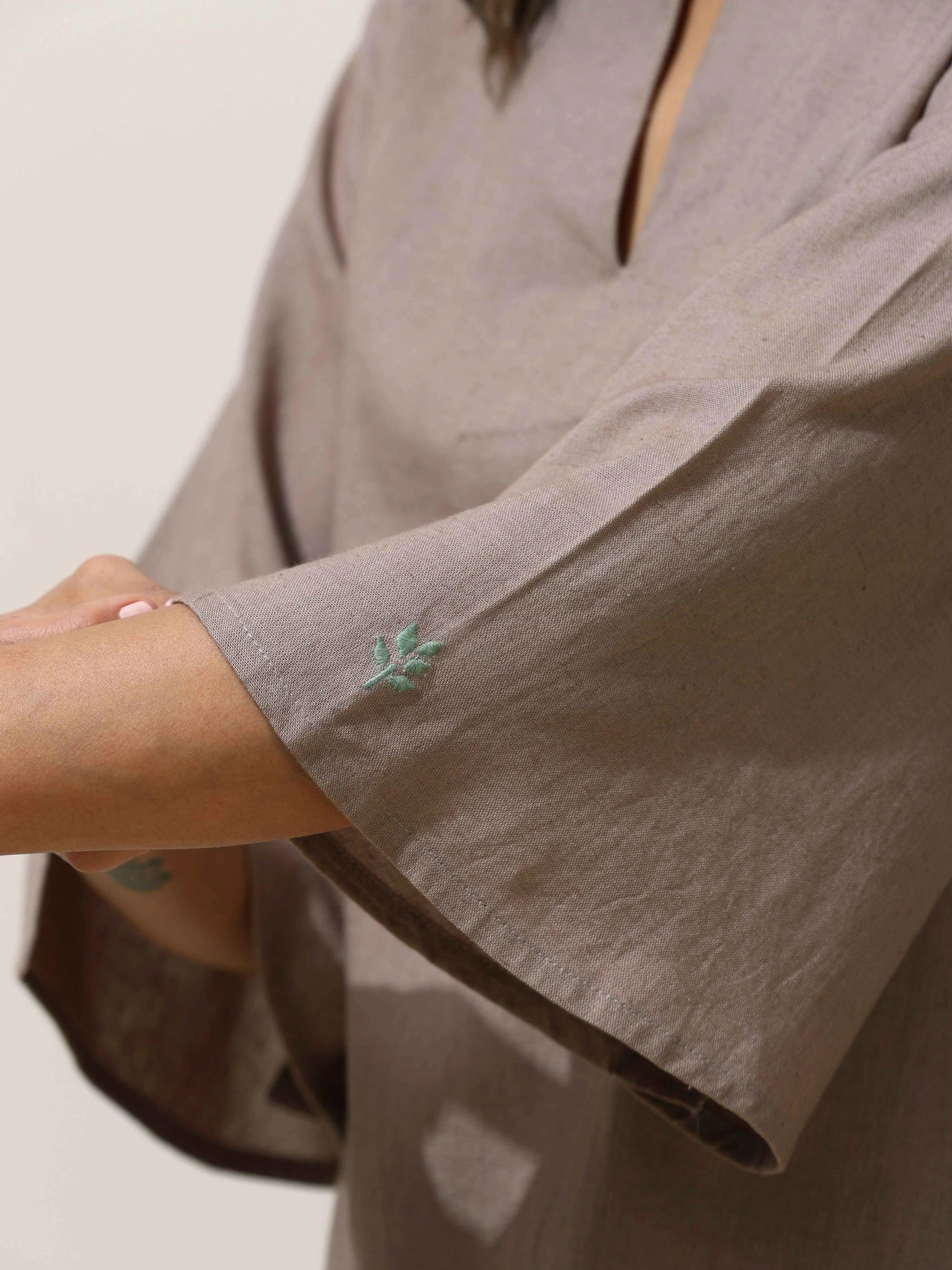 trueBrowns Grey Cotton Linen Kurta Pant Set