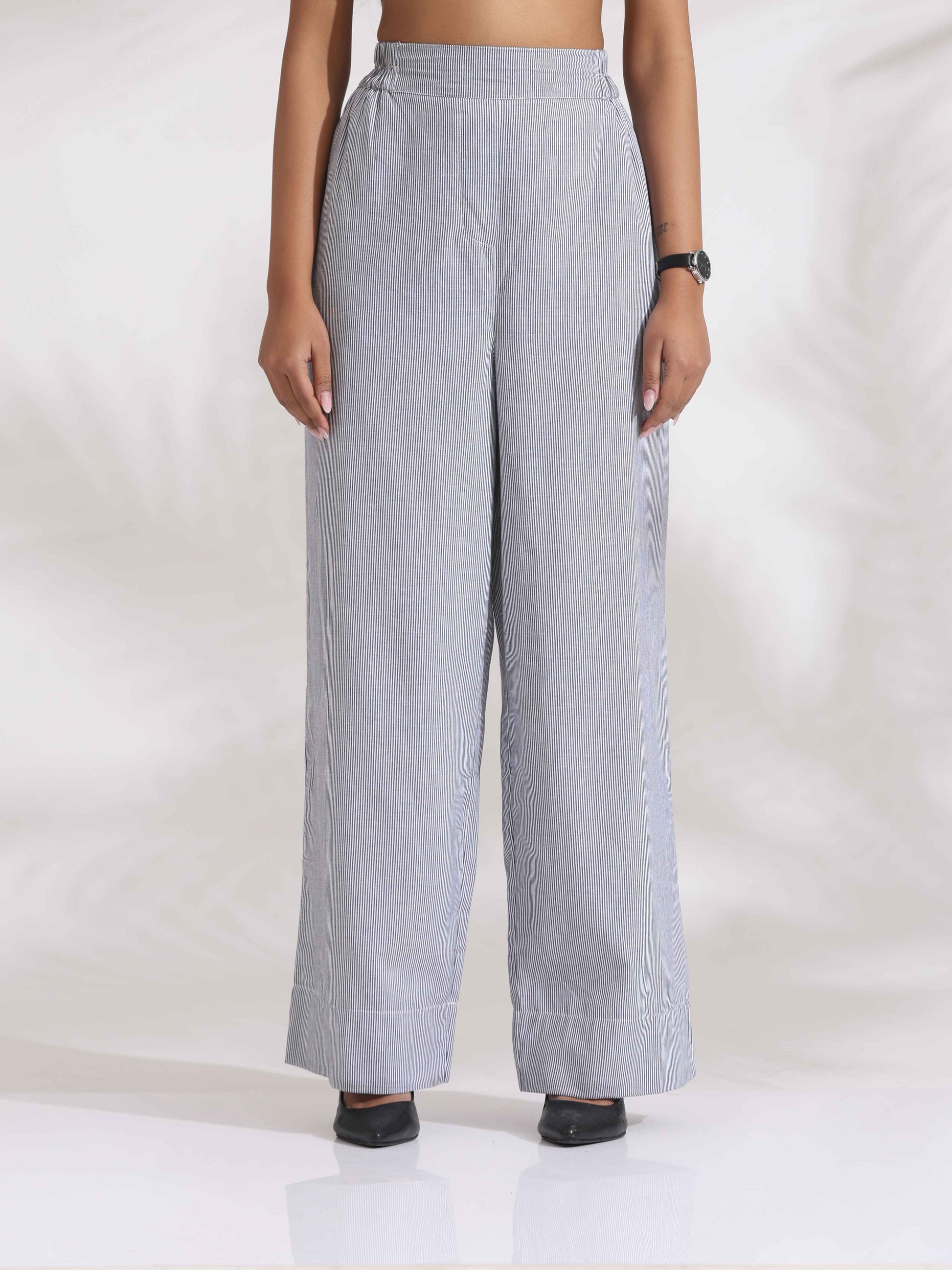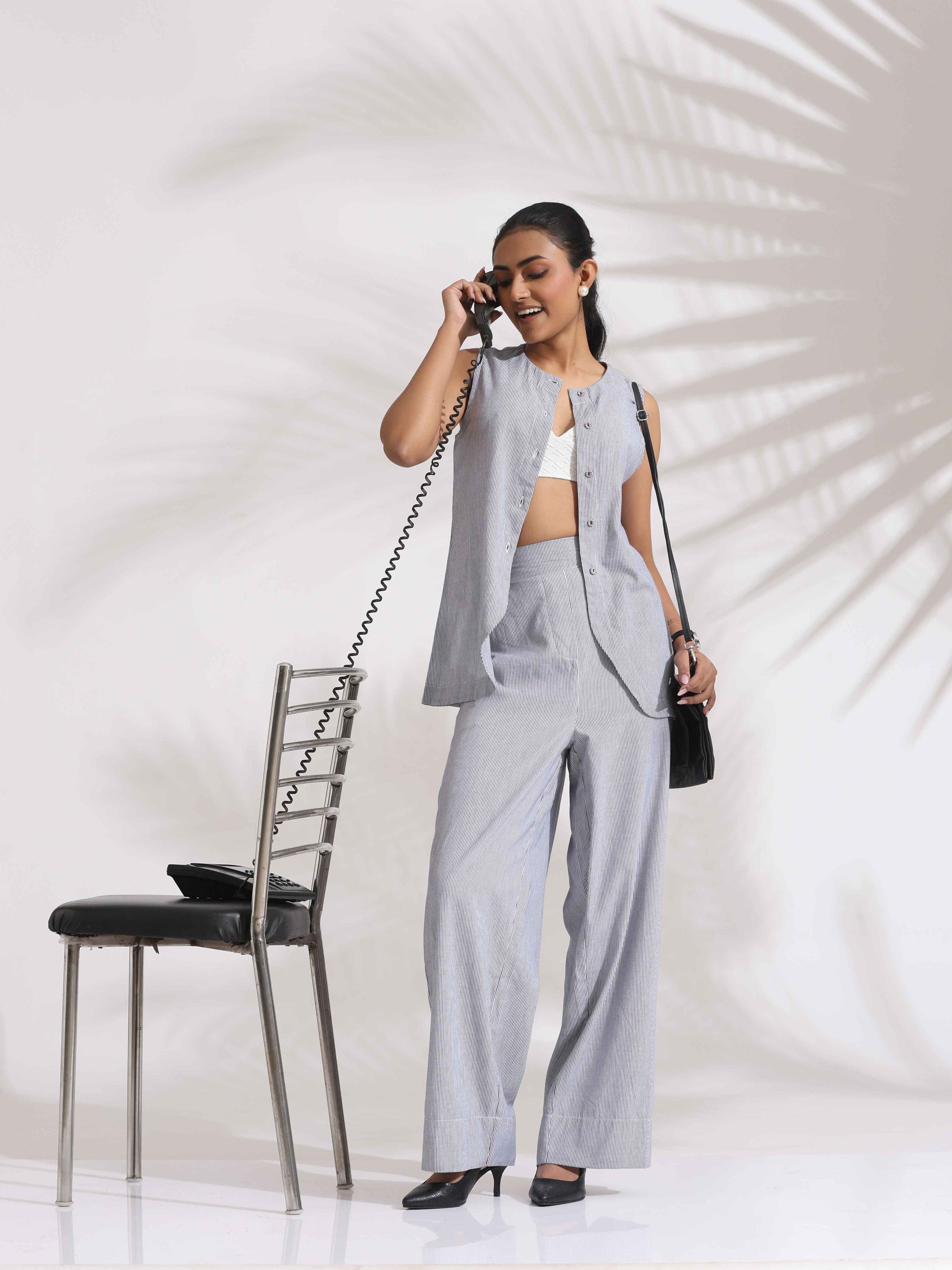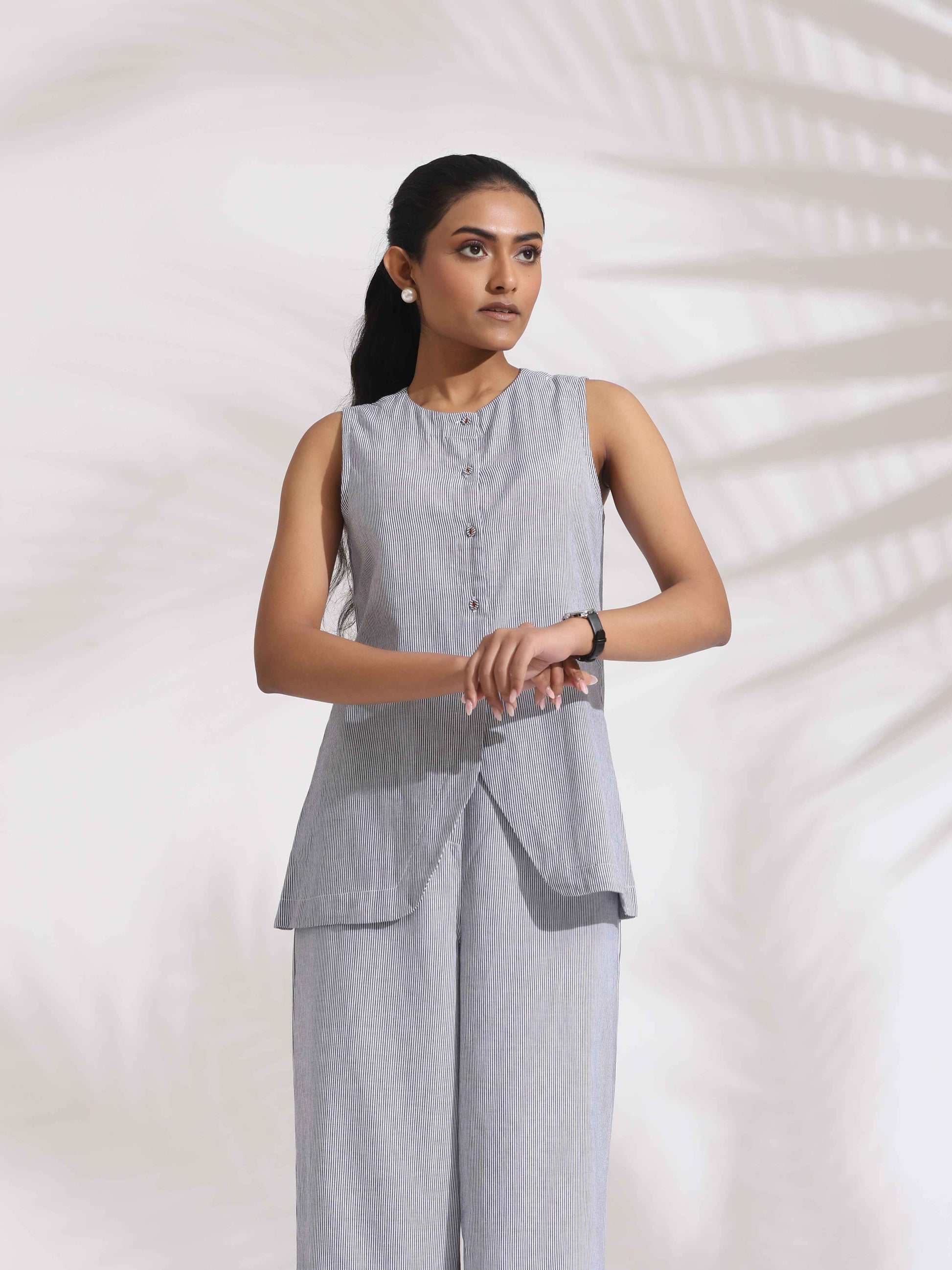 trueBrowns Grey Cotton Stripe Co-ord Set