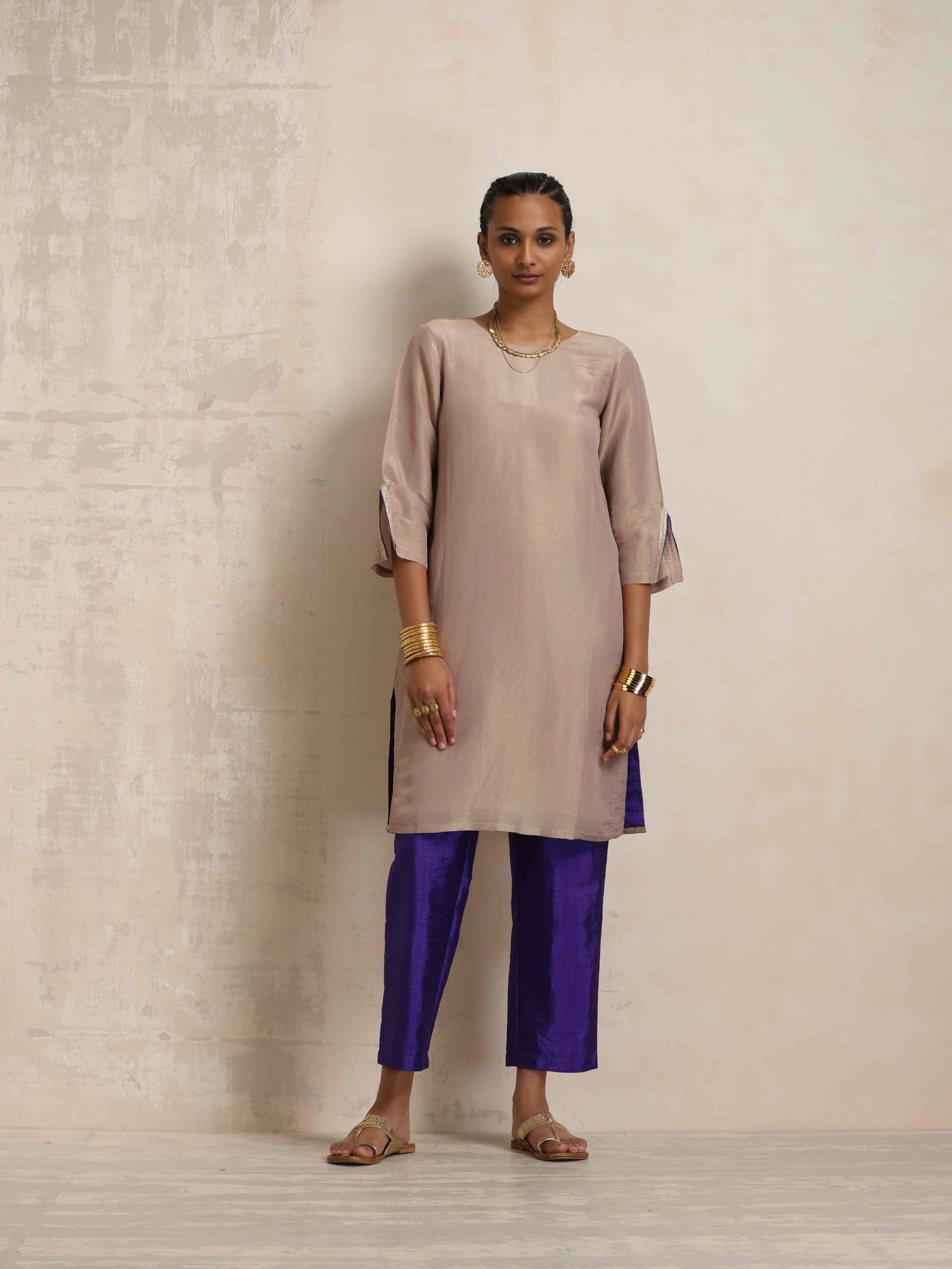 trueBrowns Lilac Tissue Kurta Co-ord Set