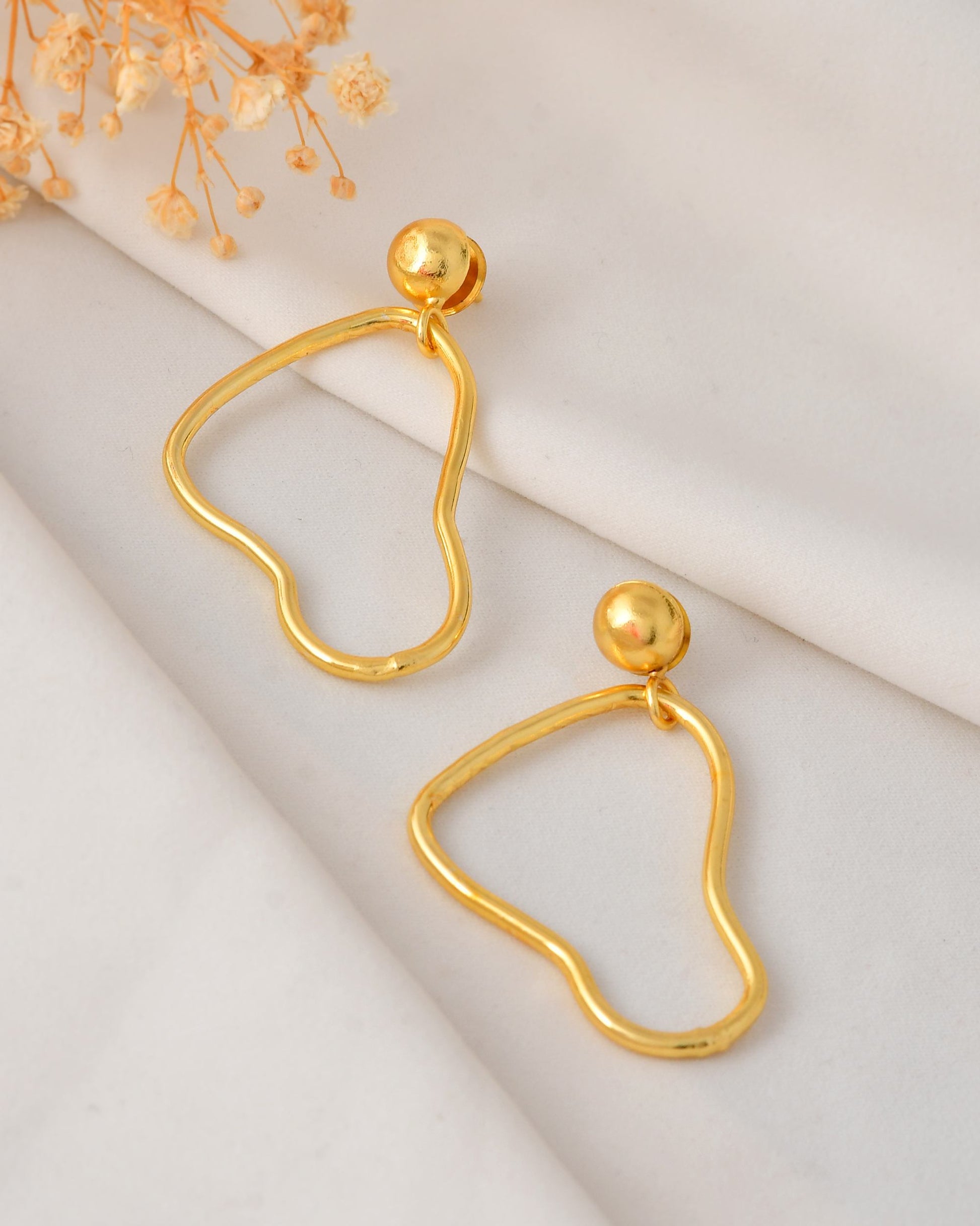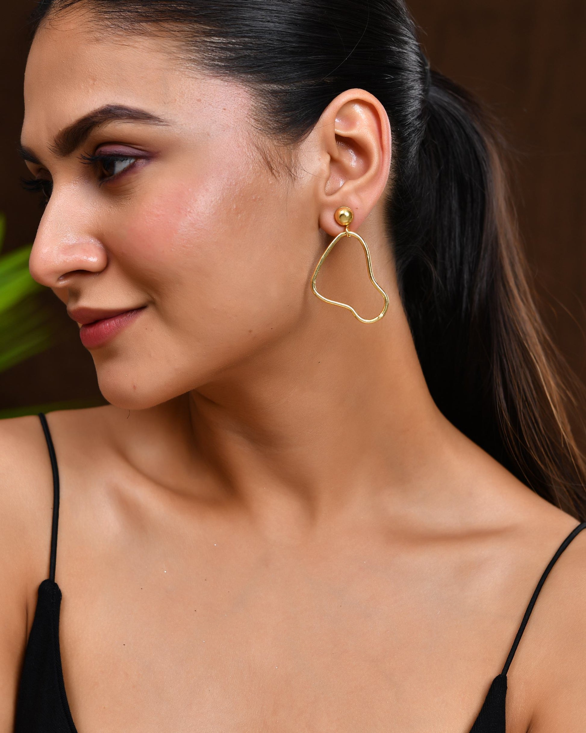 VOJ Gold Polished Anti Tarnish Designer Drop Earrings