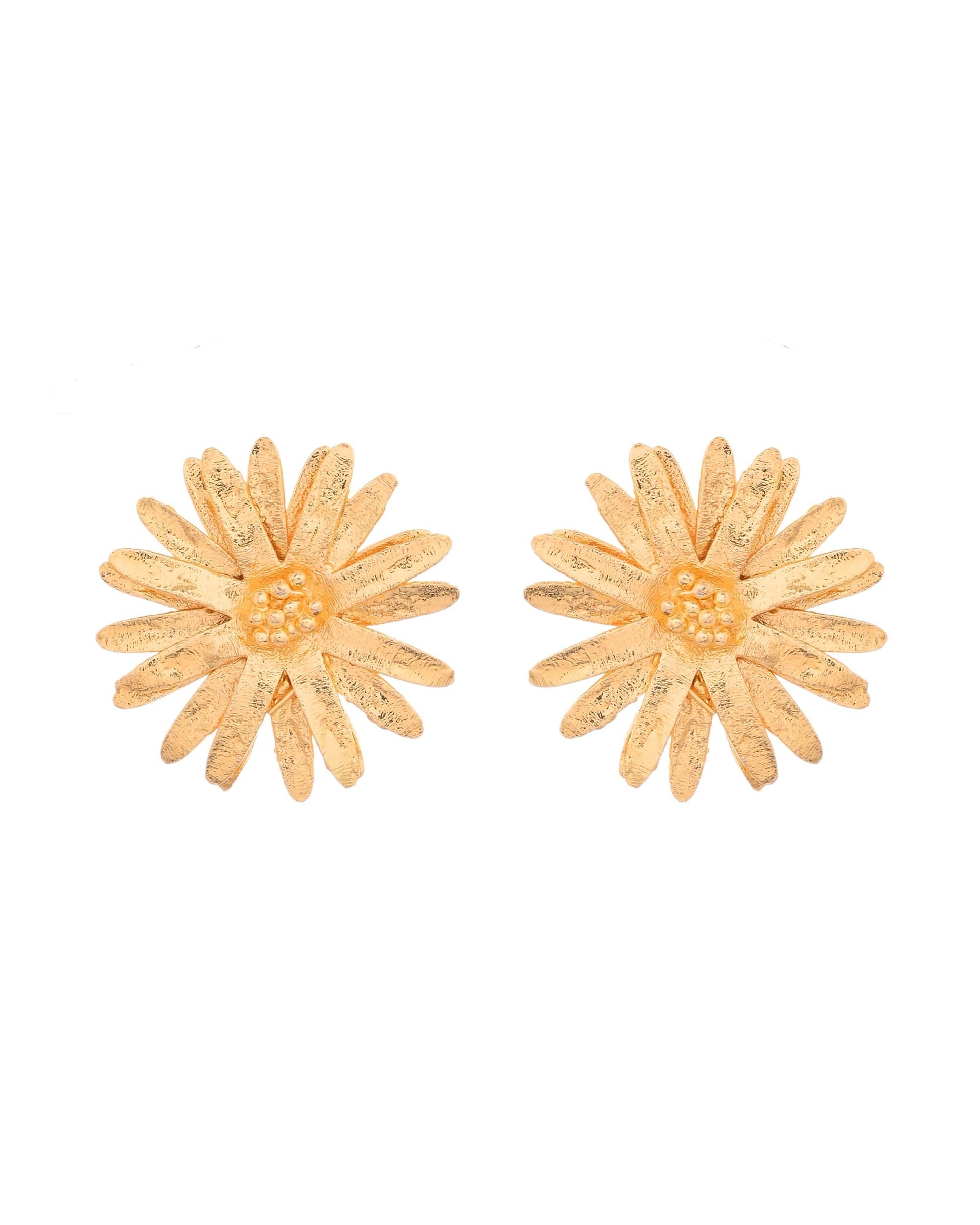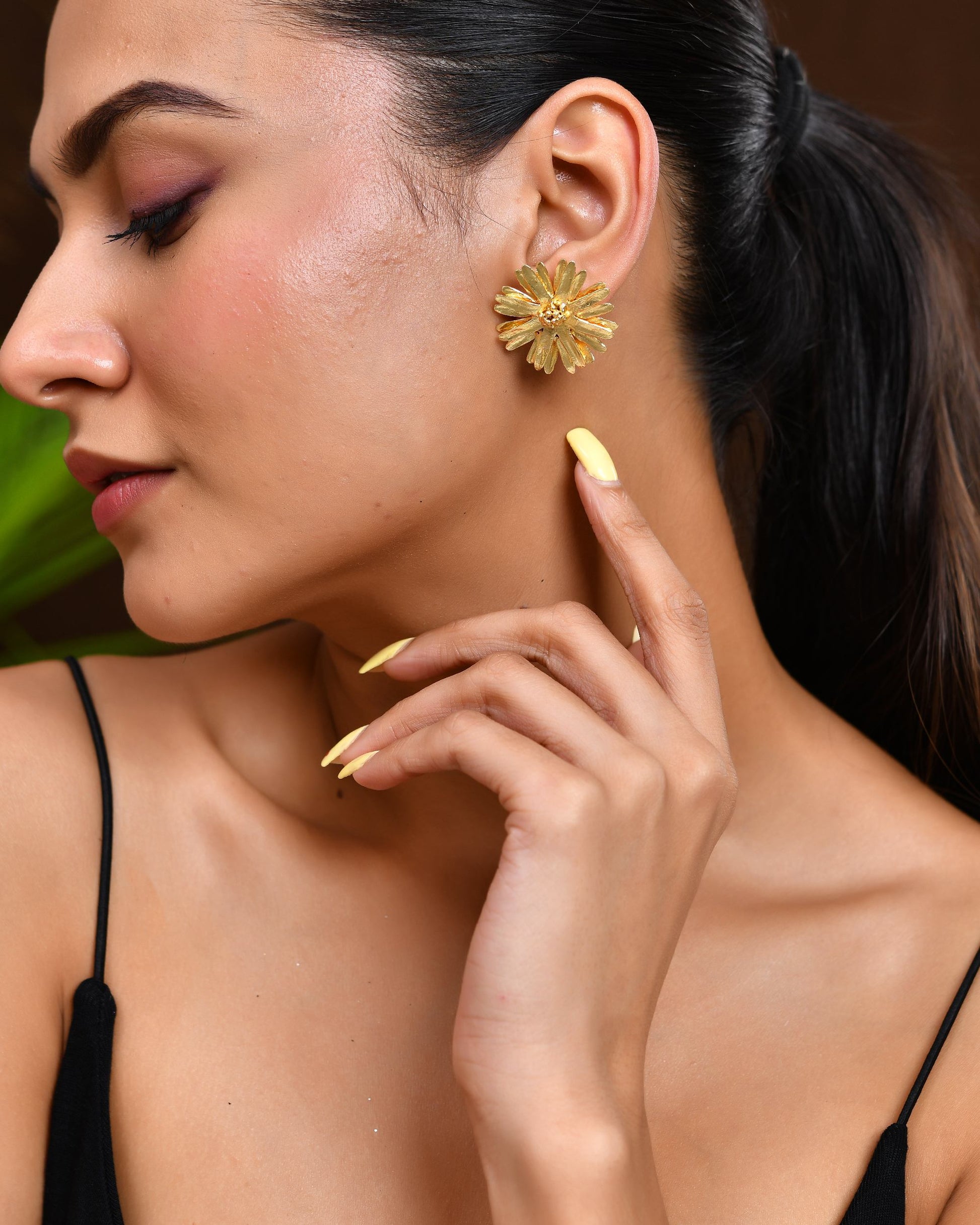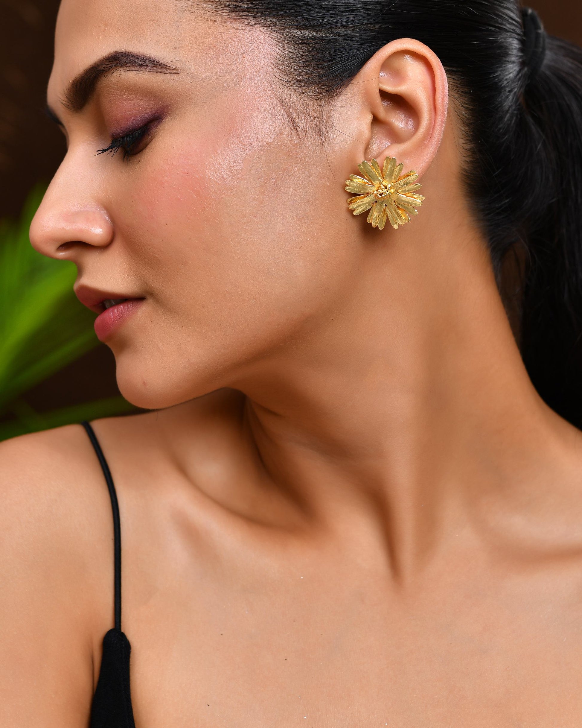 VOJ Gold Polished Anti Tarnish Elegent Floral Shaped Stud Earrings