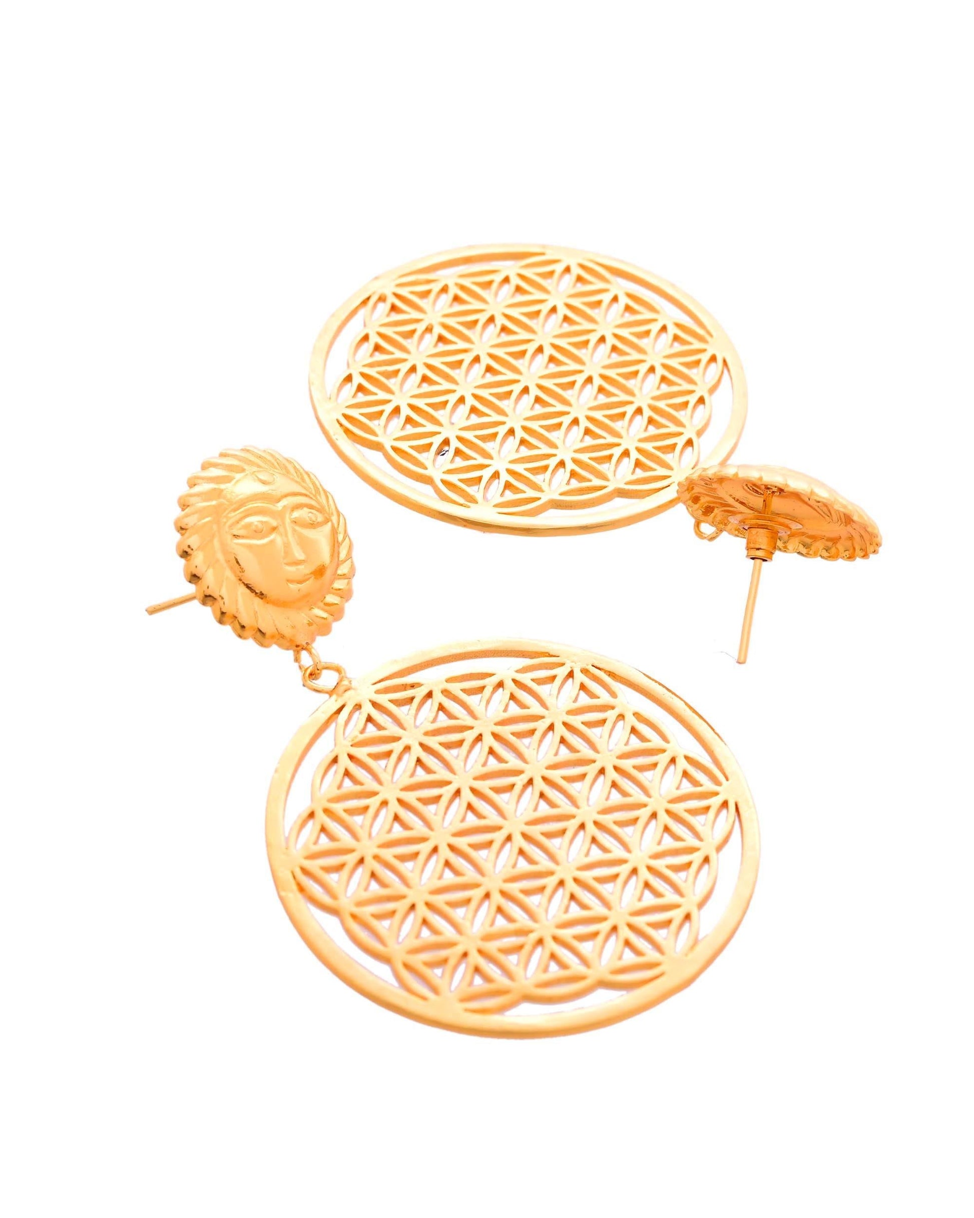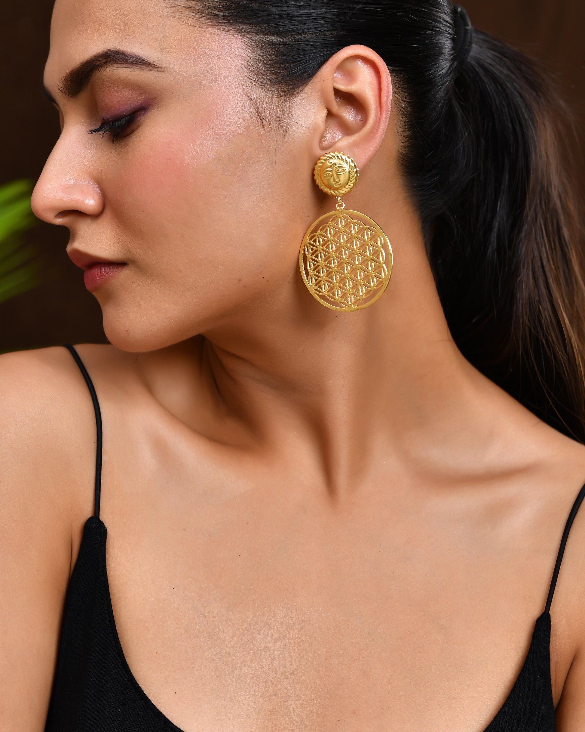 VOJ Gold Polished Hand Crafted Anti Tarnish Circular Earrings