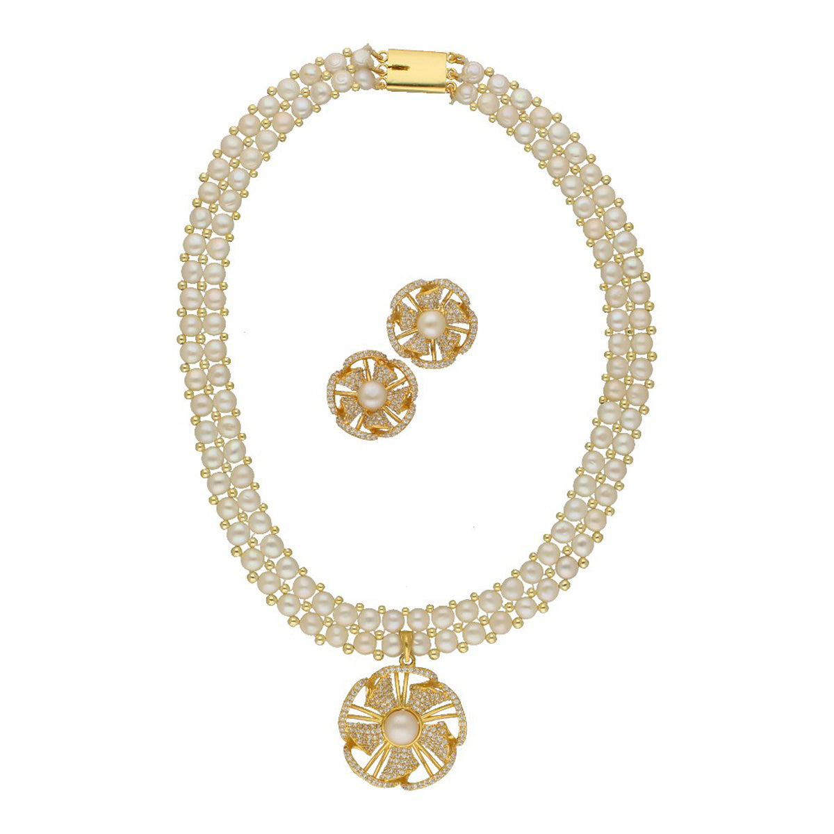 J Pearls Resplendent Dual Line Pearl Necklace Set
