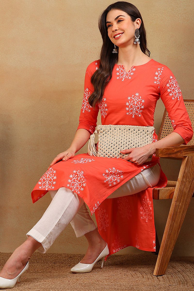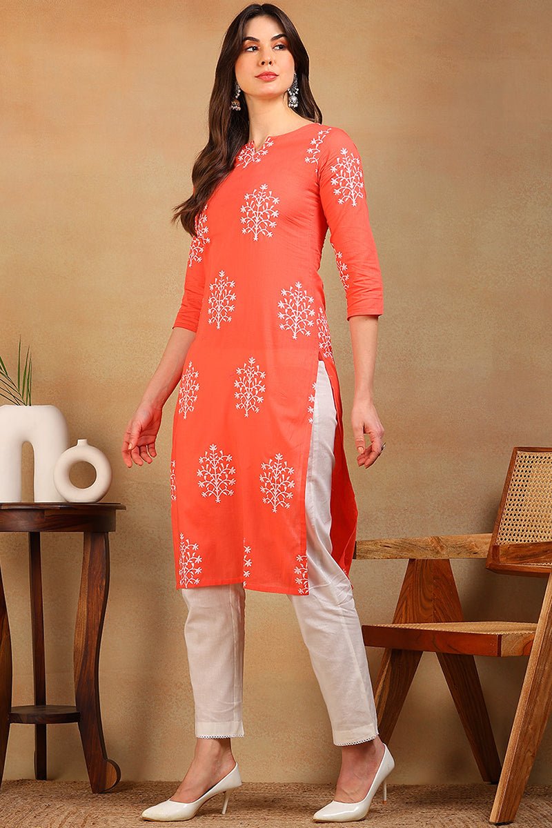 Ahika Festive Wear Cotton Fabric Peach Color Printed Kurti