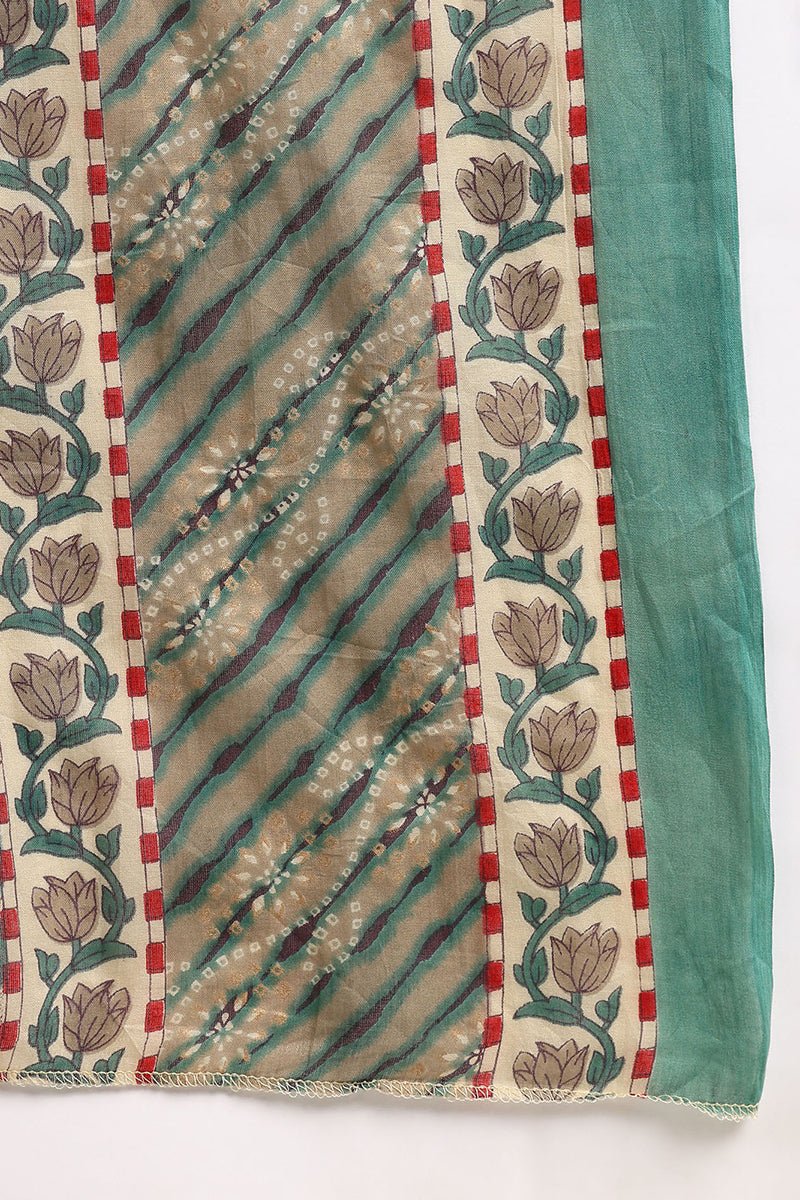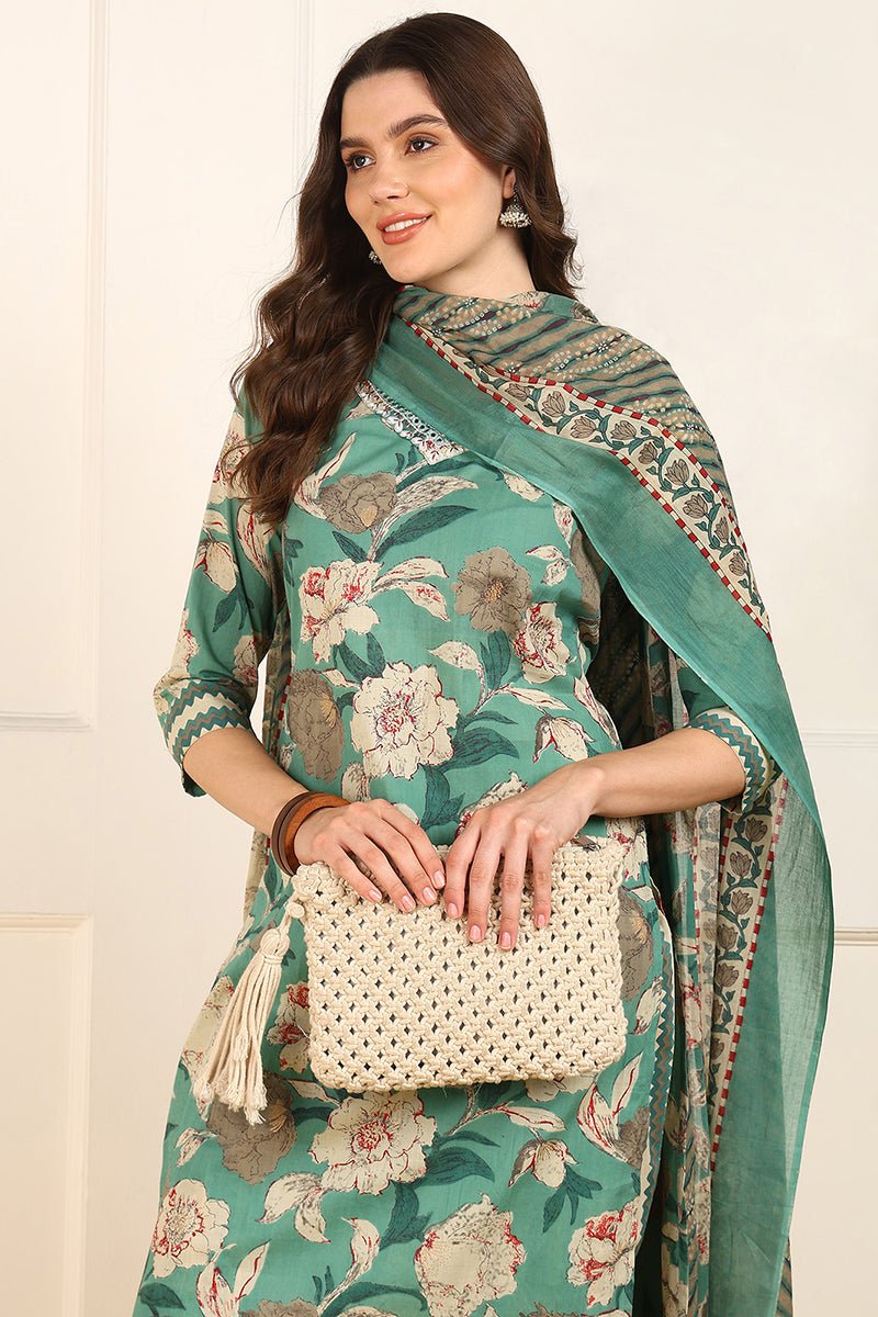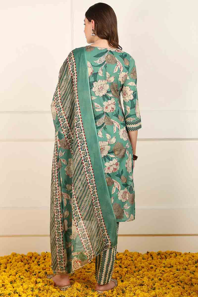 Ahika Green Cotton Floral Printed Straight Suit Set