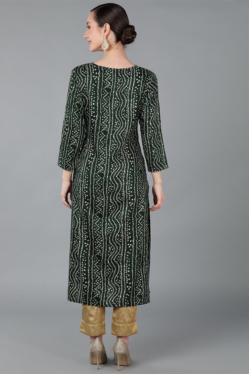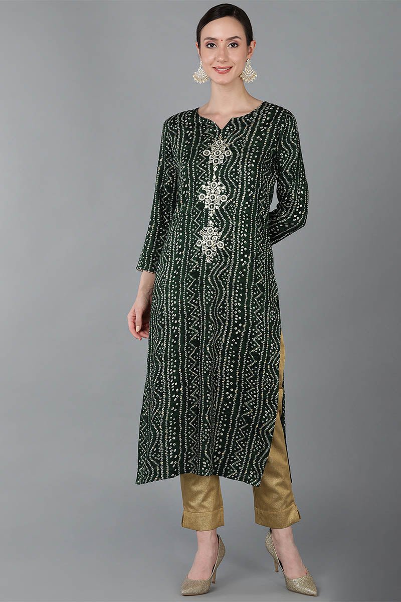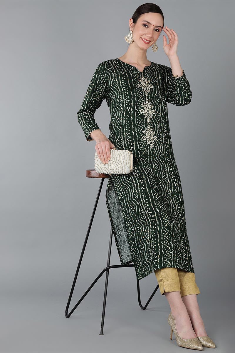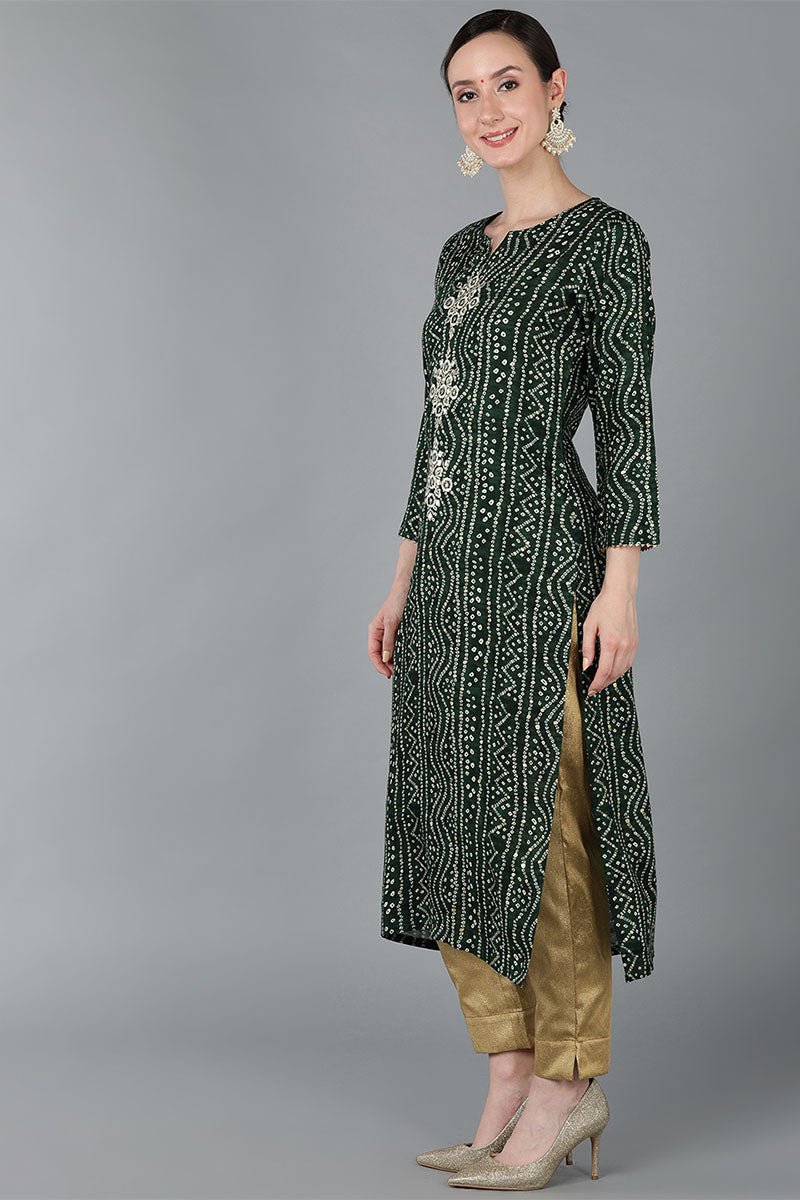 Ahika Green Viscose Rayon Ethnic Motifs Straight Kurta