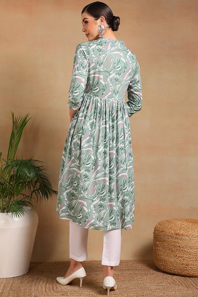 Ahika Green Viscose Rayon Floral Printed A-Line Kurta