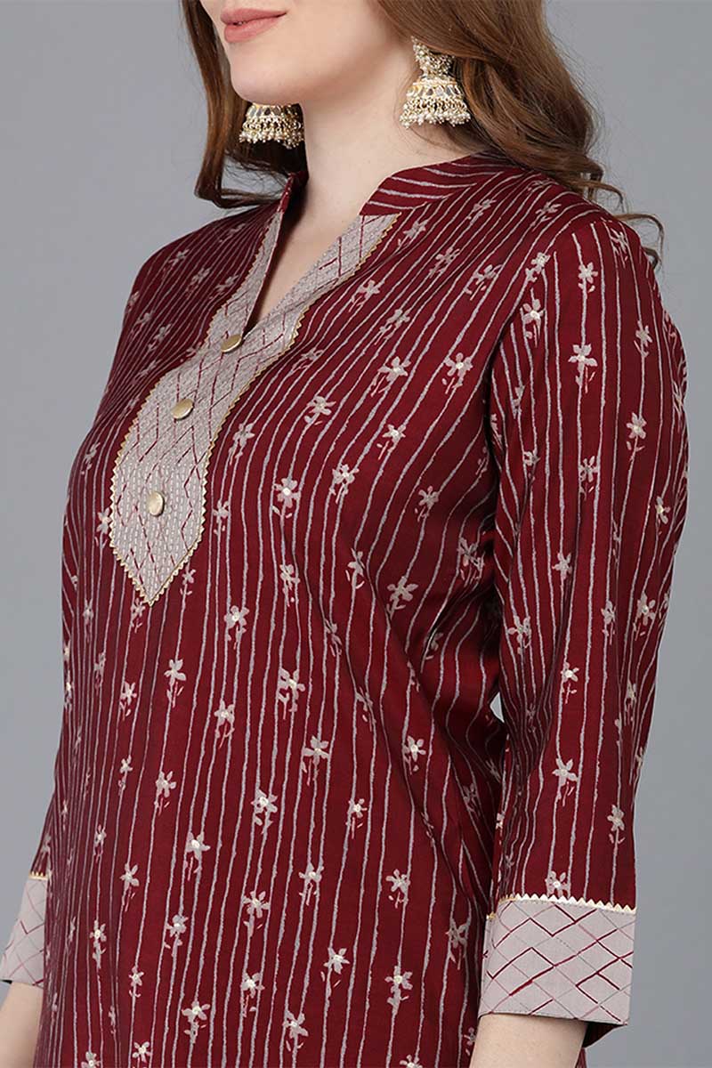 Ahika Maroon Poly Silk Straight Kurta Pant With Dupatta