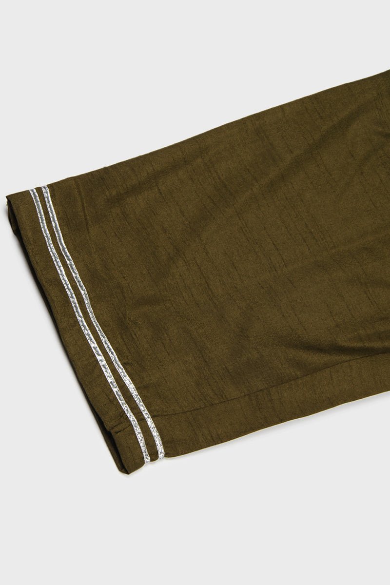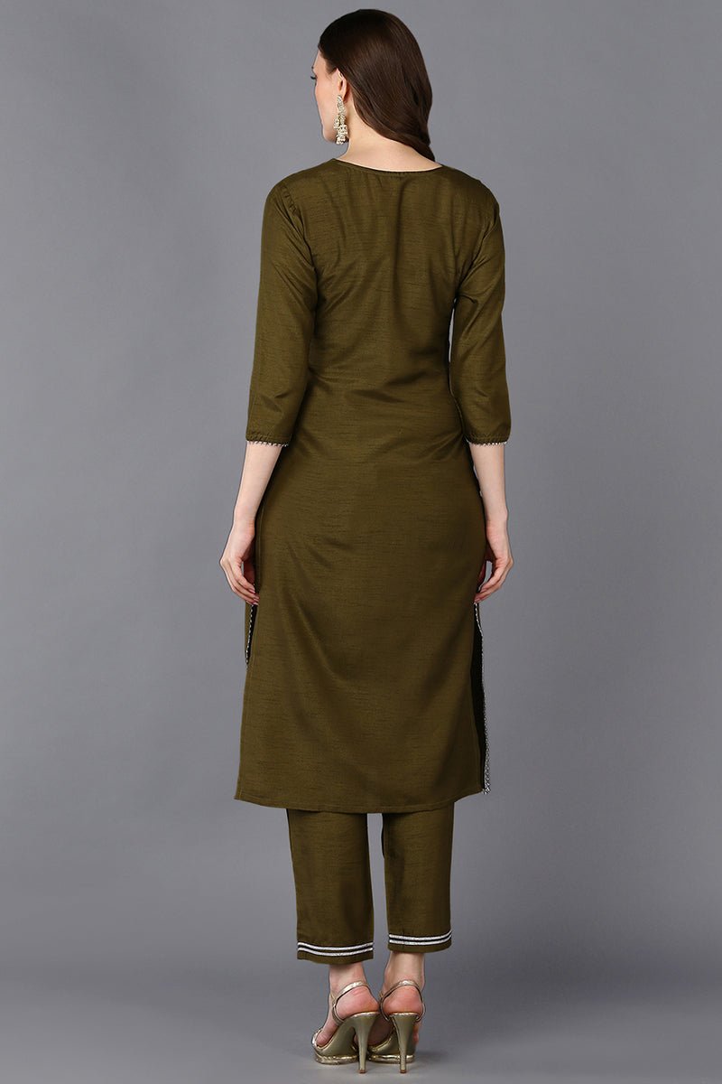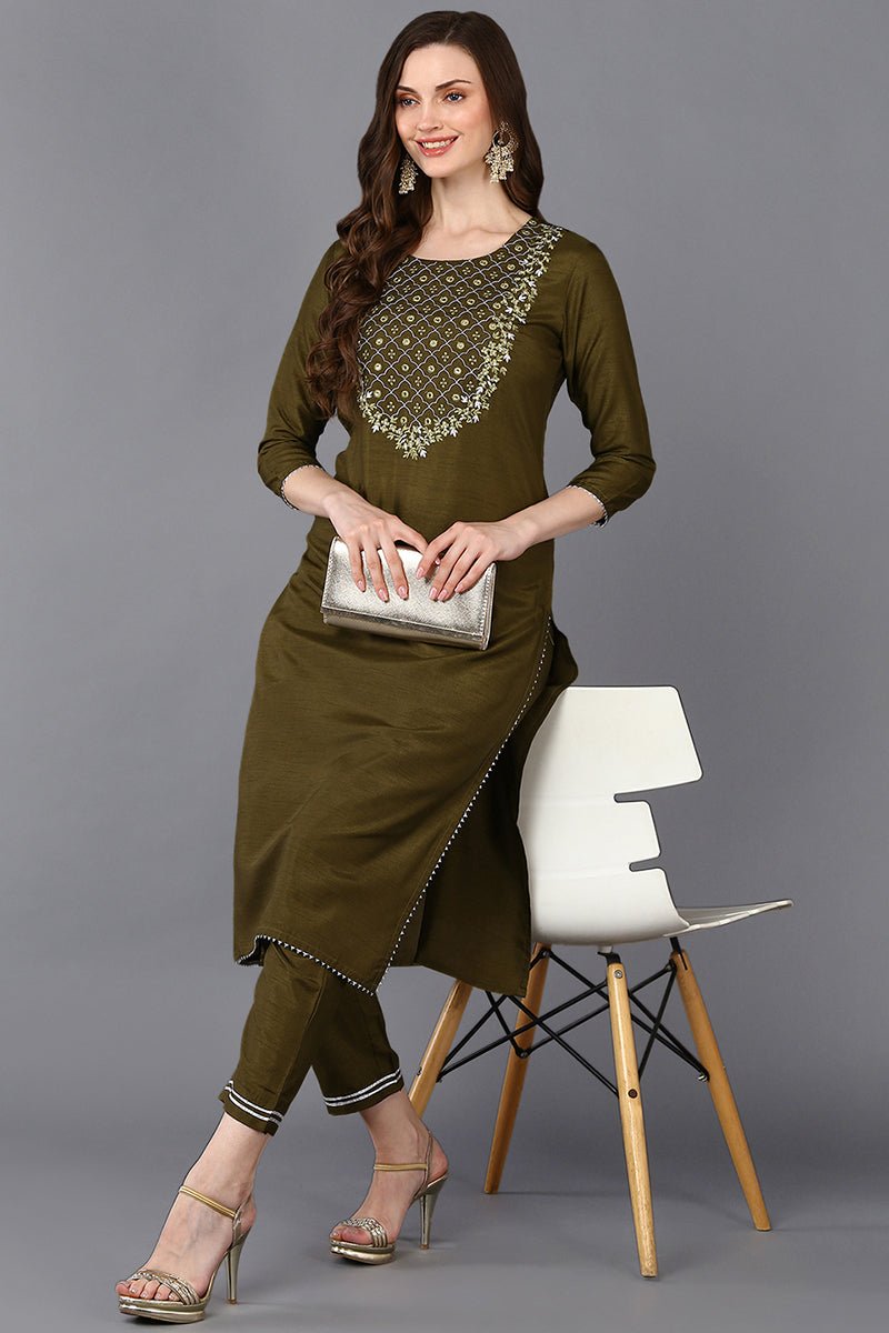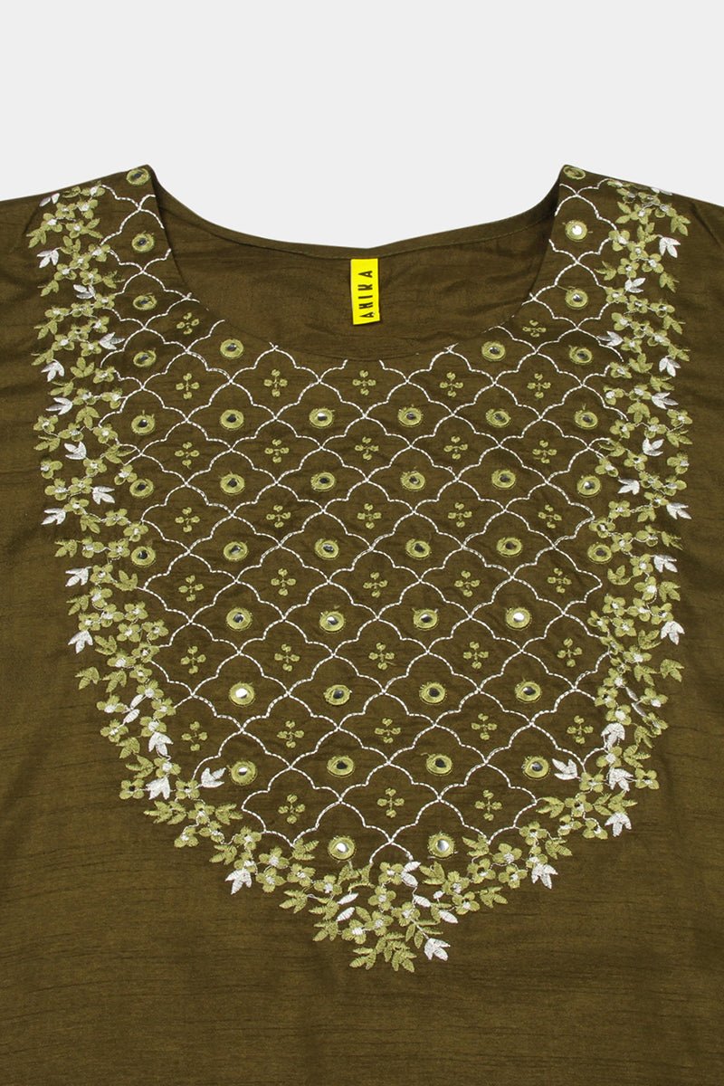 Ahika Mehndi Green Silk Blend Embroidered Straight Kurta
