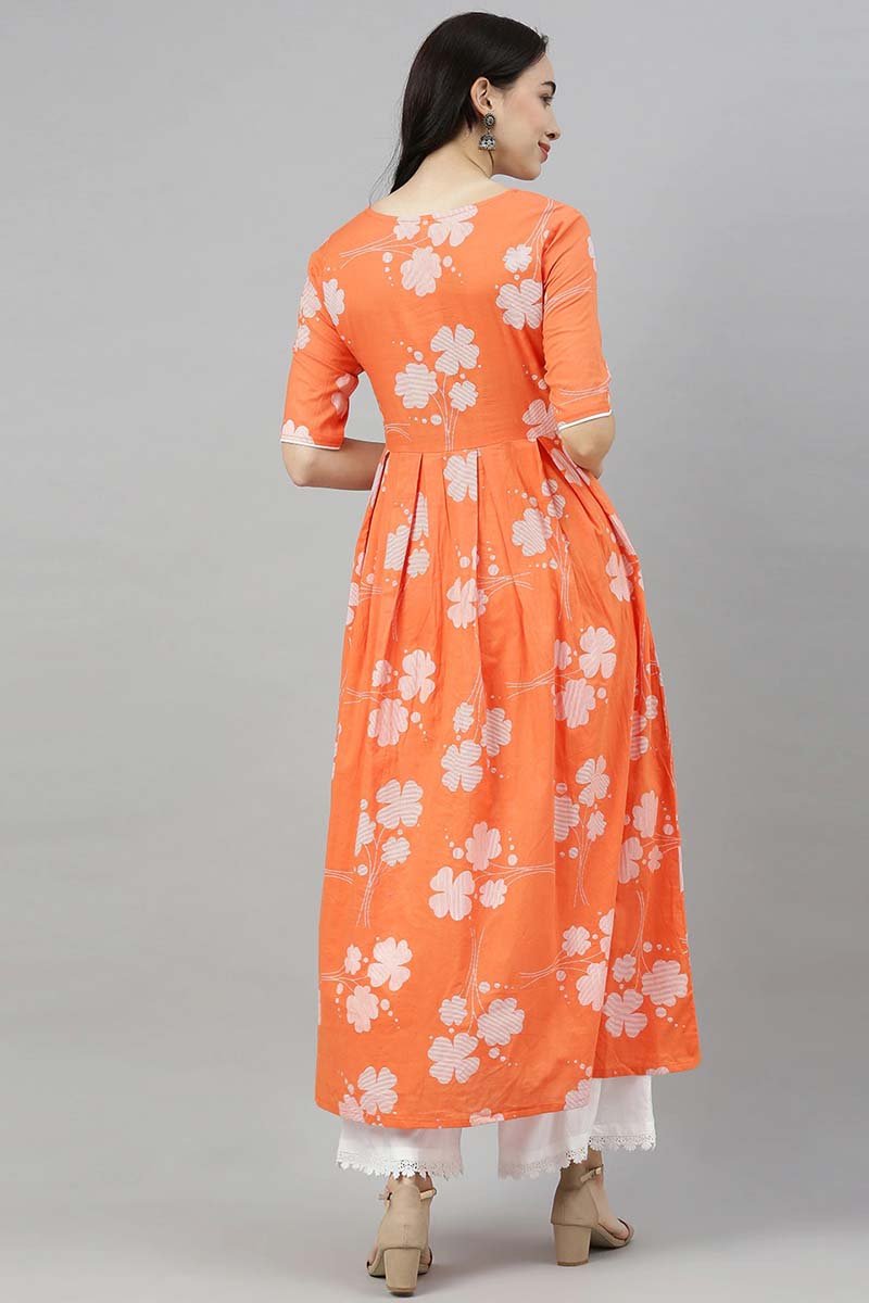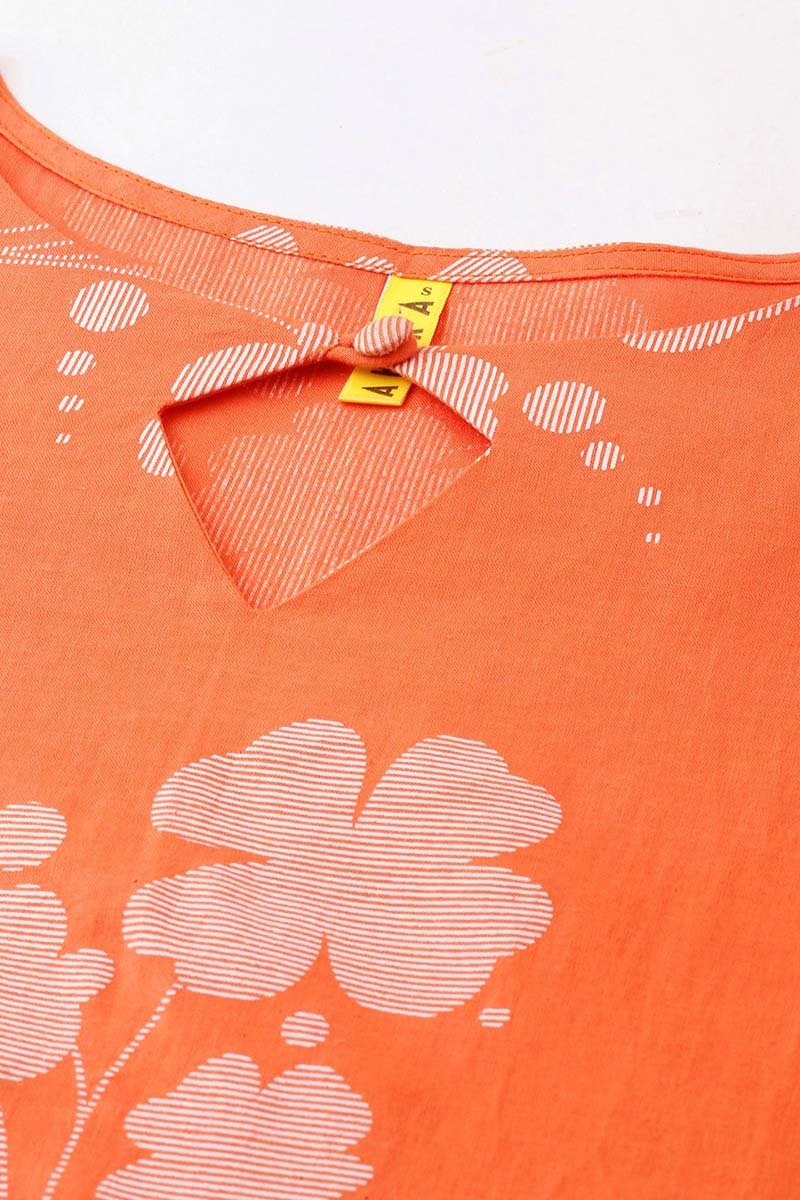 Ahika Orange Floral Printed Keyhole Neck Kurta