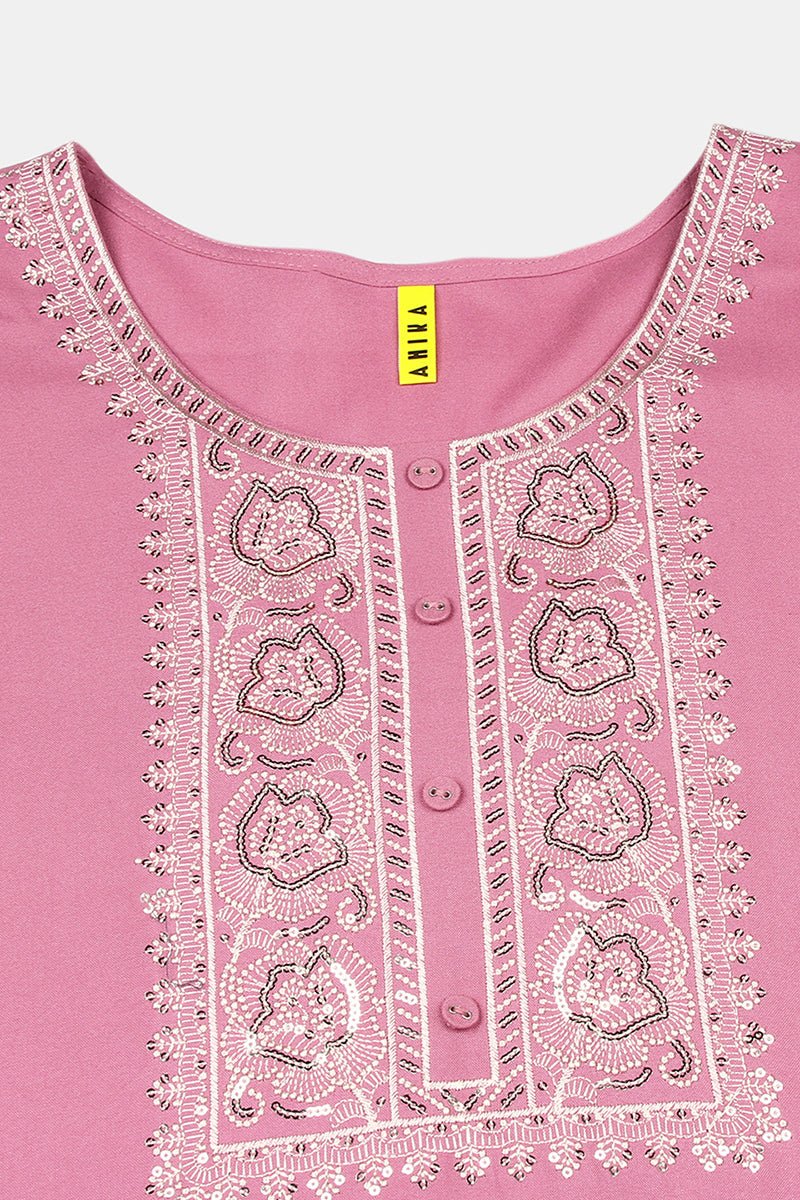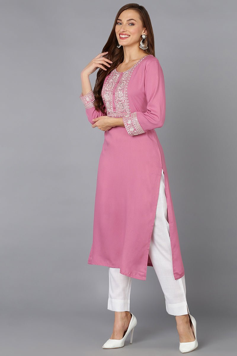Ahika Pink Rayon Embroidered Straight Kurta