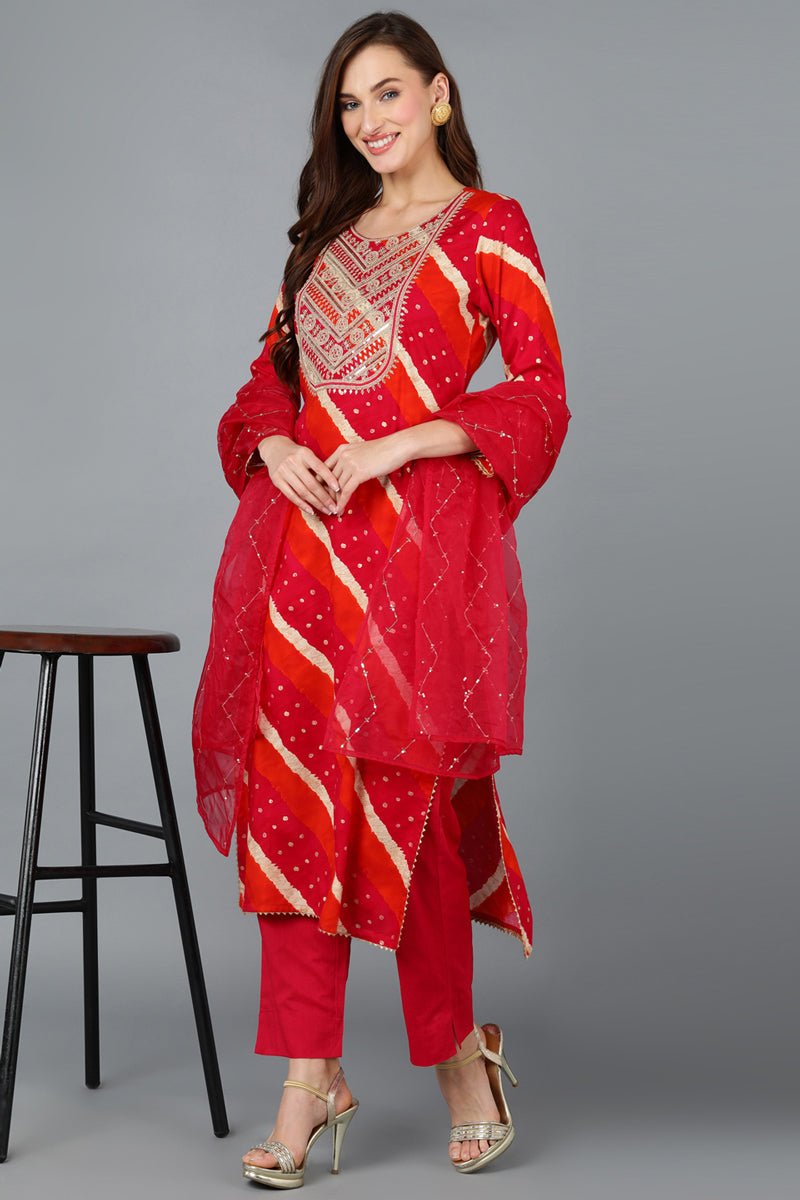 Ahika Pink Viscose Rayon Embroidered Leheriya Printed Kurta Pant With Dupatta