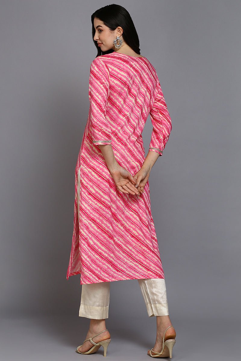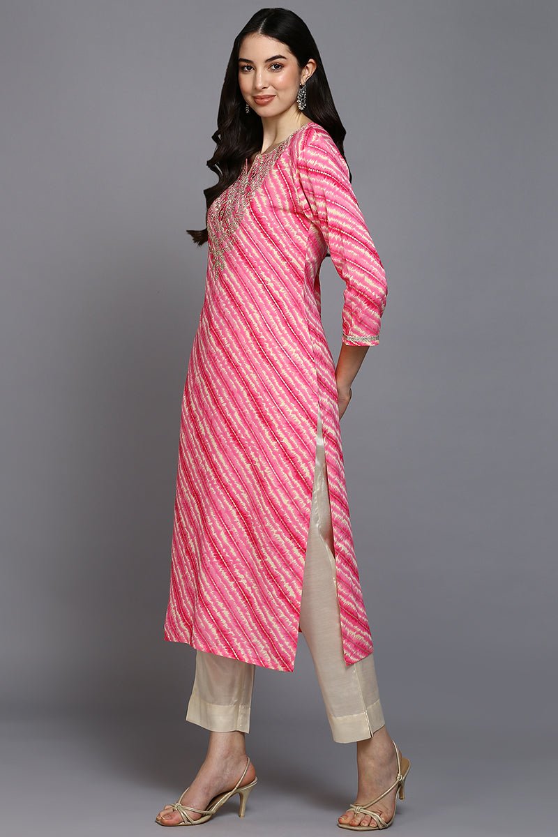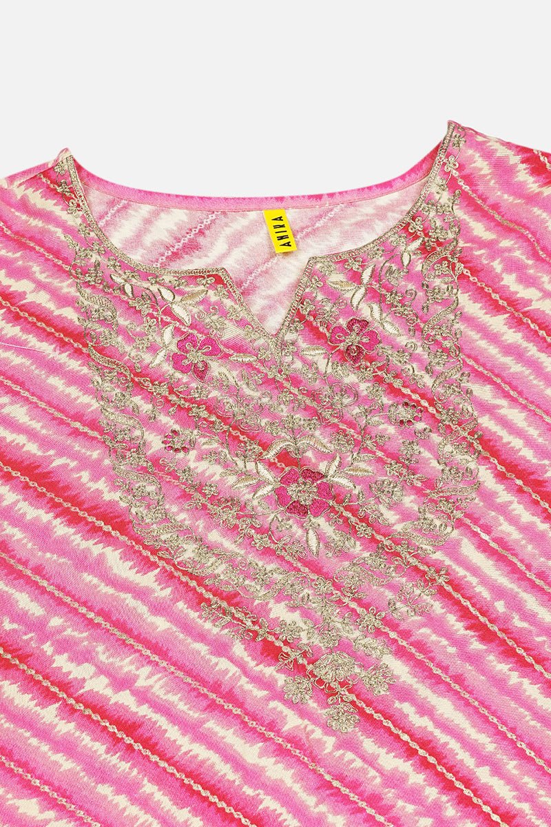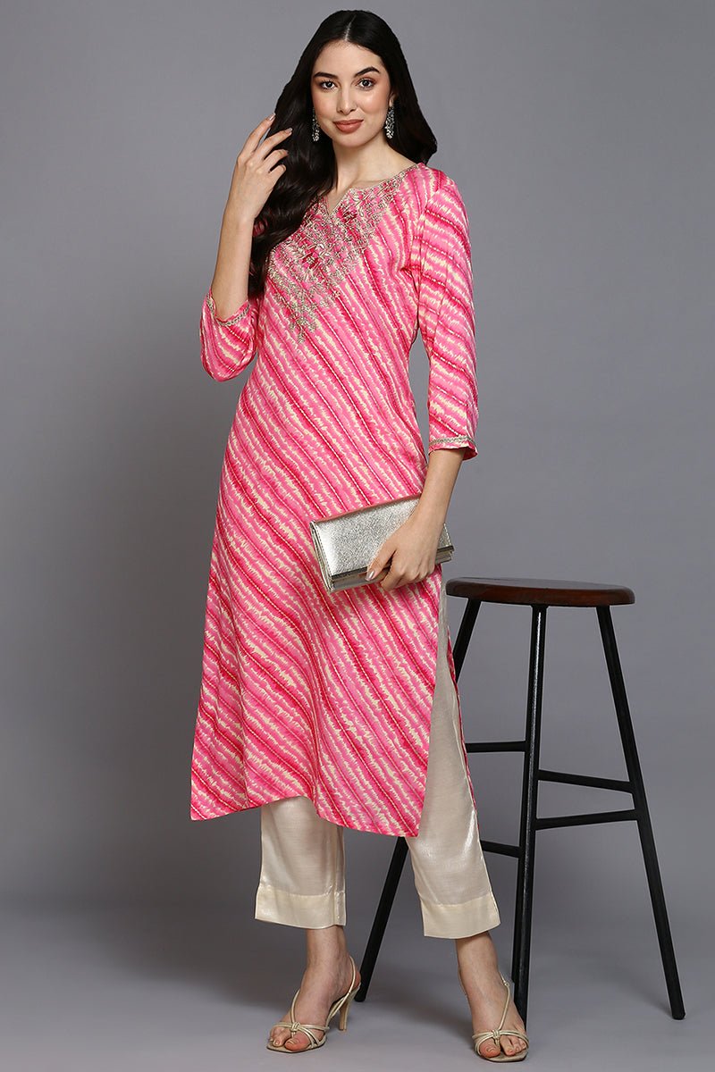 Ahika Pink Viscose Rayon Leheriya A-Line Kurta