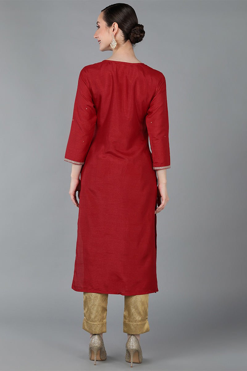 Ahika Red Chanderi Silk Solid Straight Kurta
