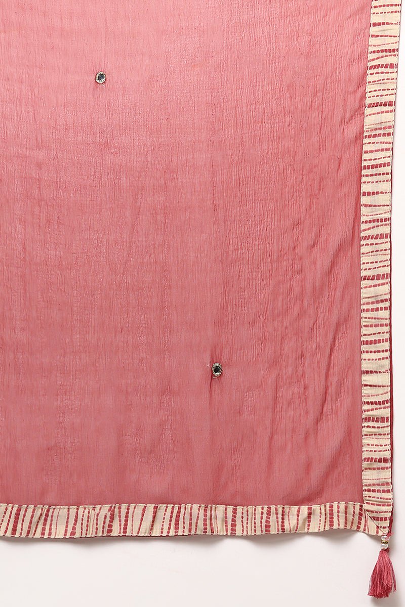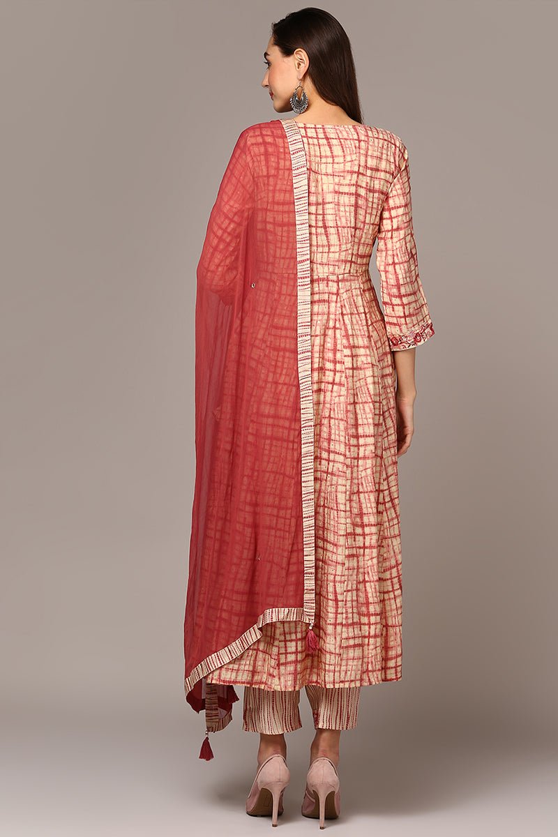 Ahika Red Silk Blend Abstract Printed Flared Suit Set