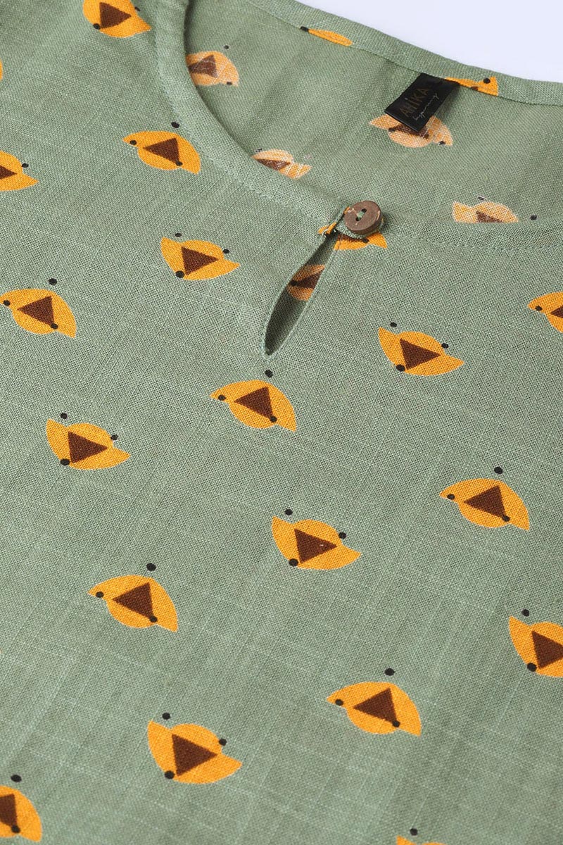 Ahika Women Festive Wear Cotton Fabric Green Color Printed Trendy Kurti