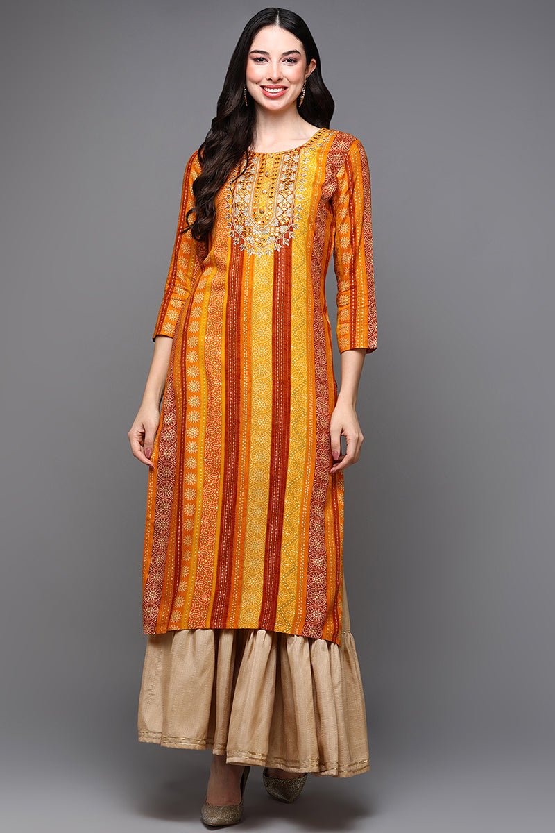 Ahika Yellow Viscose Rayon Ethnic Motifs Straight Kurta