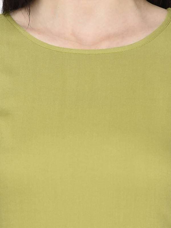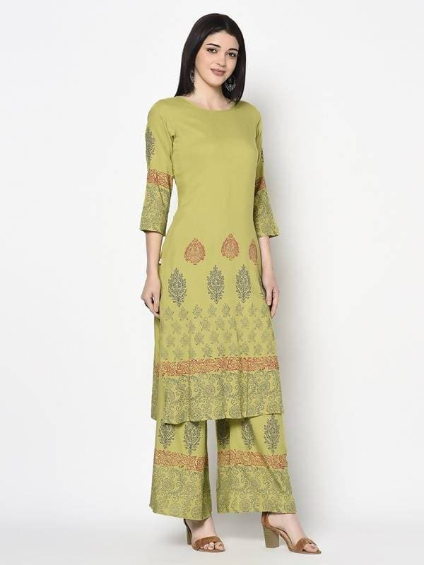 Aniyah Rayon Parrot Green Color Block Print Straight Kurta (AN-198K)
