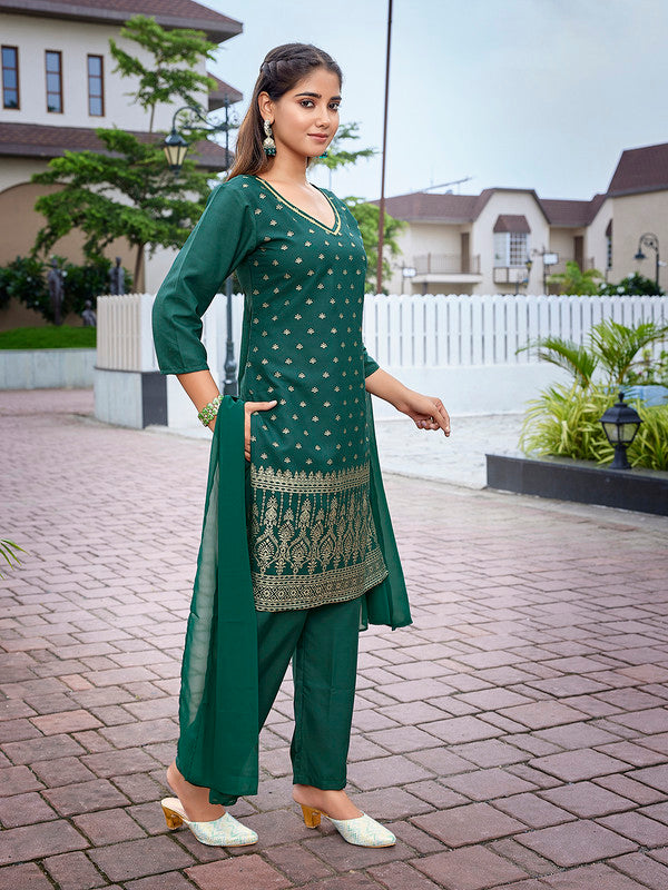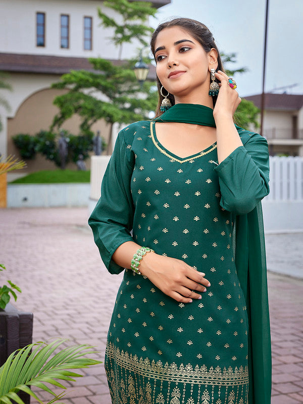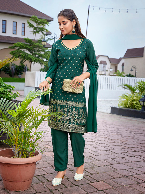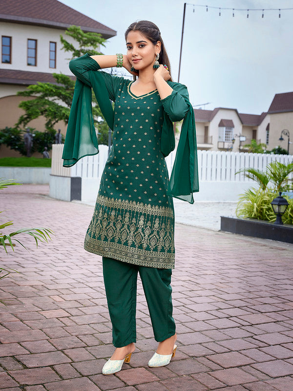 NOZ2TOZ Women's Crepe Printed Straight Kurta Pant With Dupatta - Bottle Green