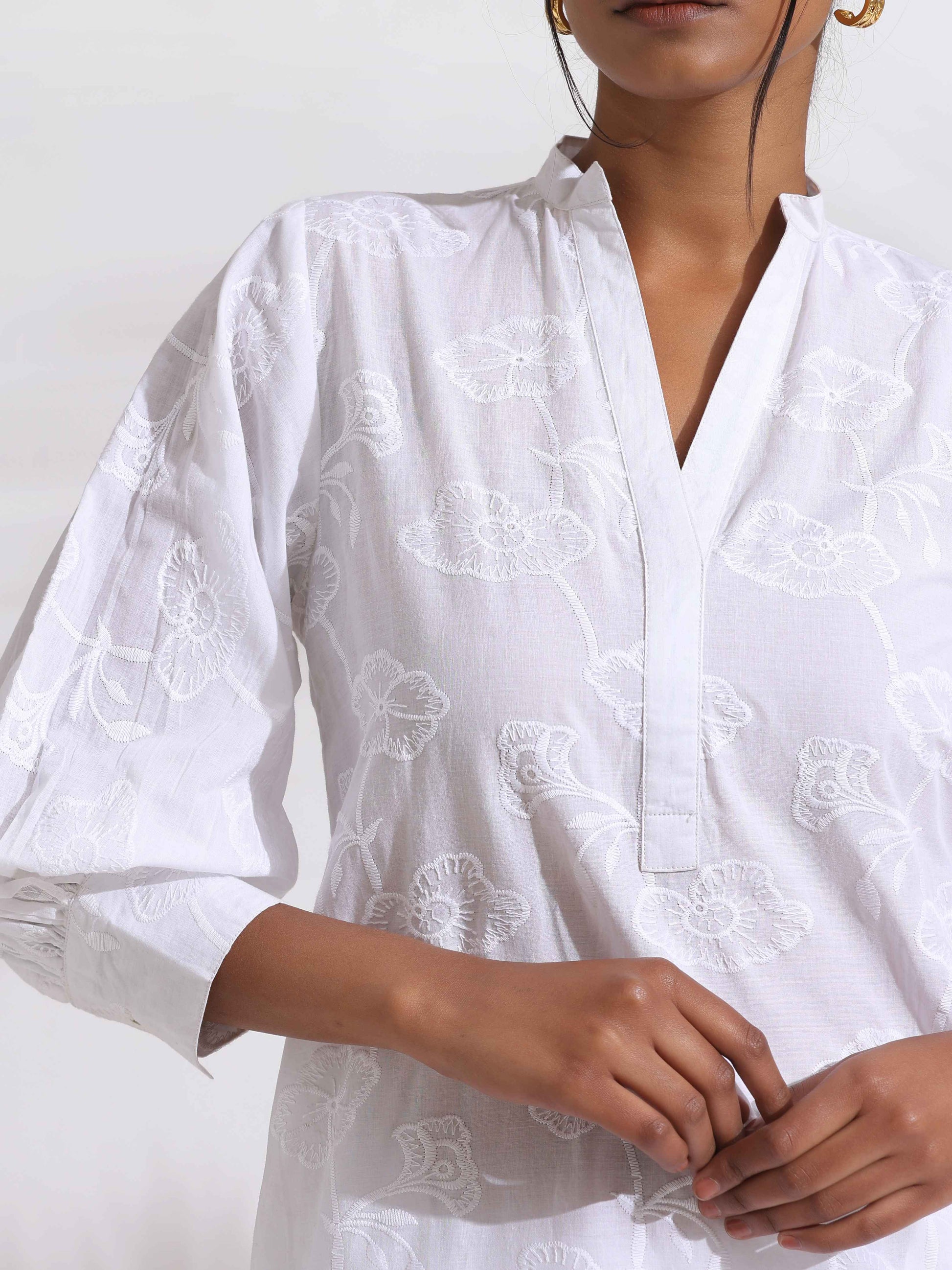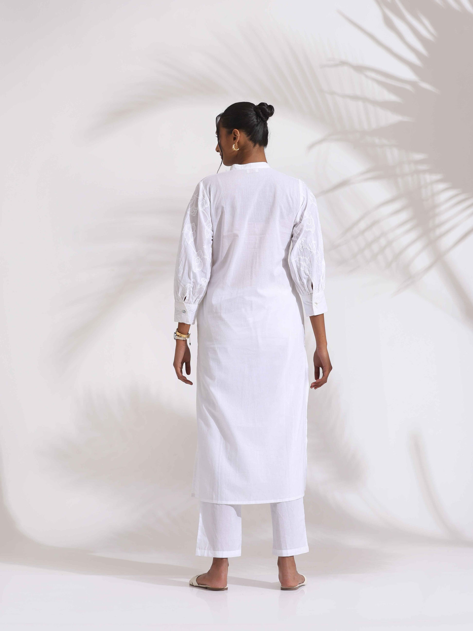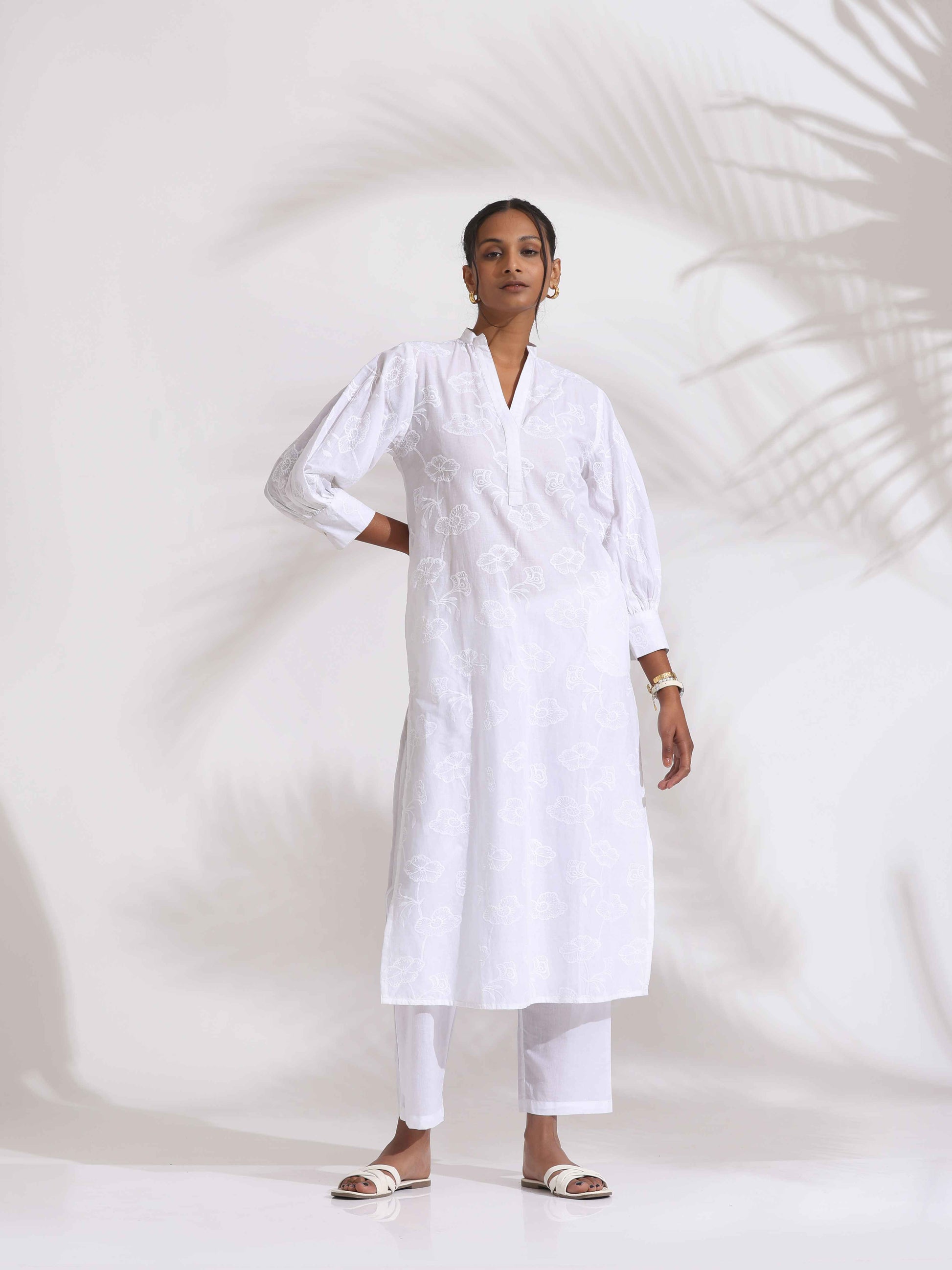 trueBrowns trueBrown White Cotton Schiffli Kurta Set