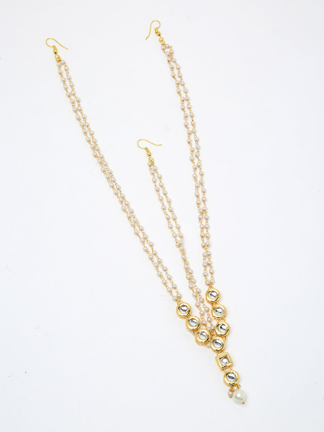 Gold Plated White Kundan Beaded Matha Patti - Ruby Raang - Grab2buy