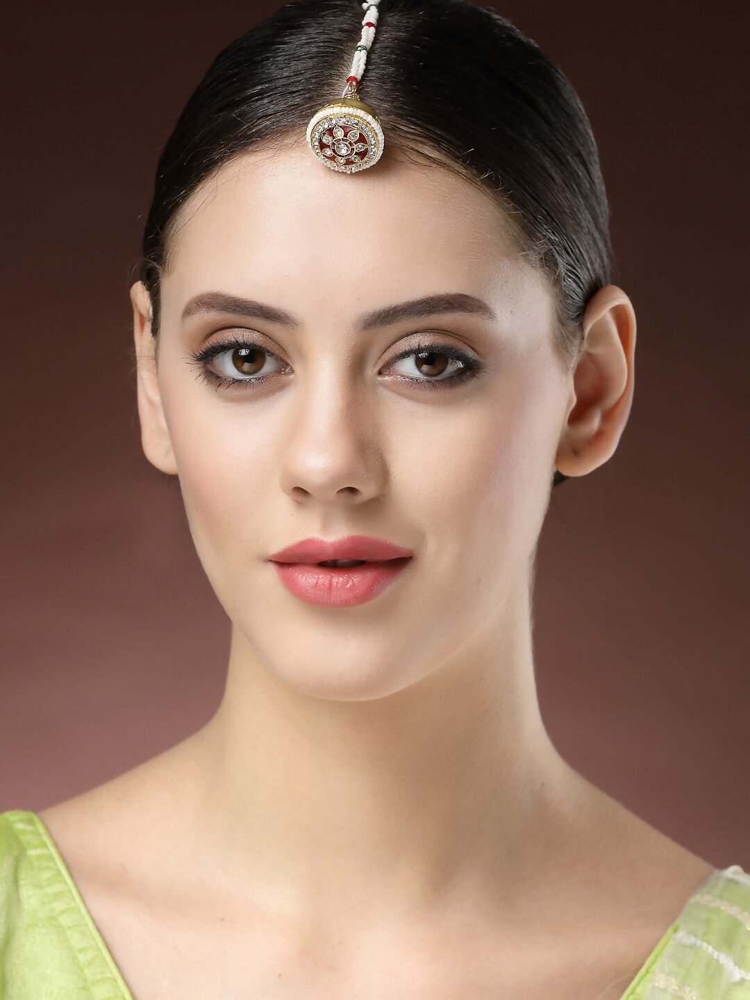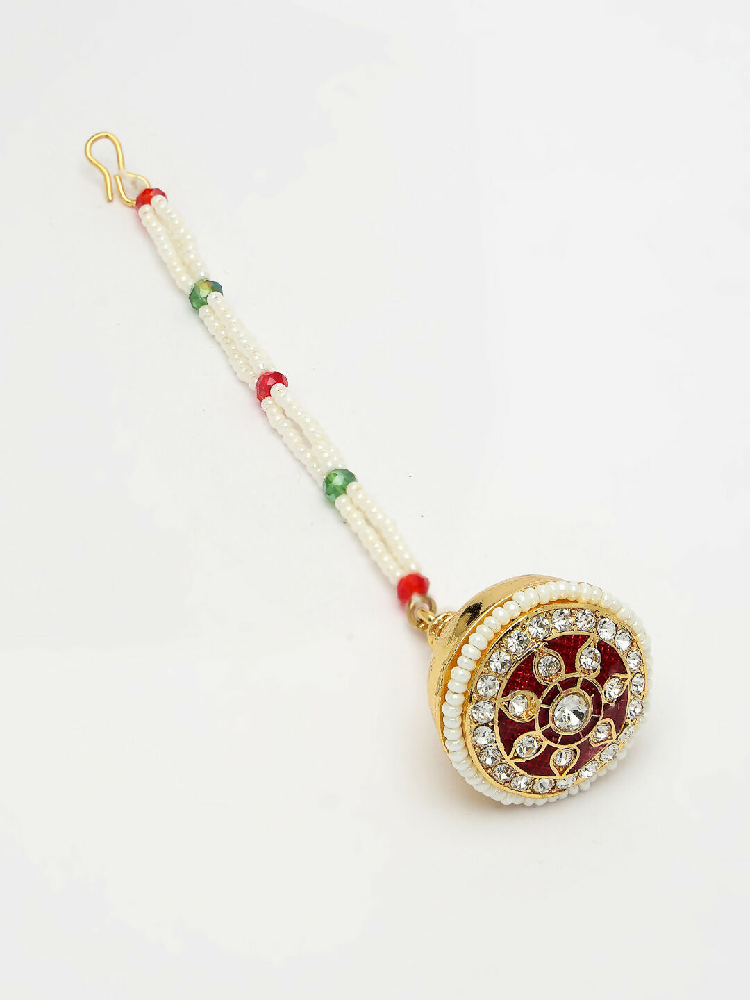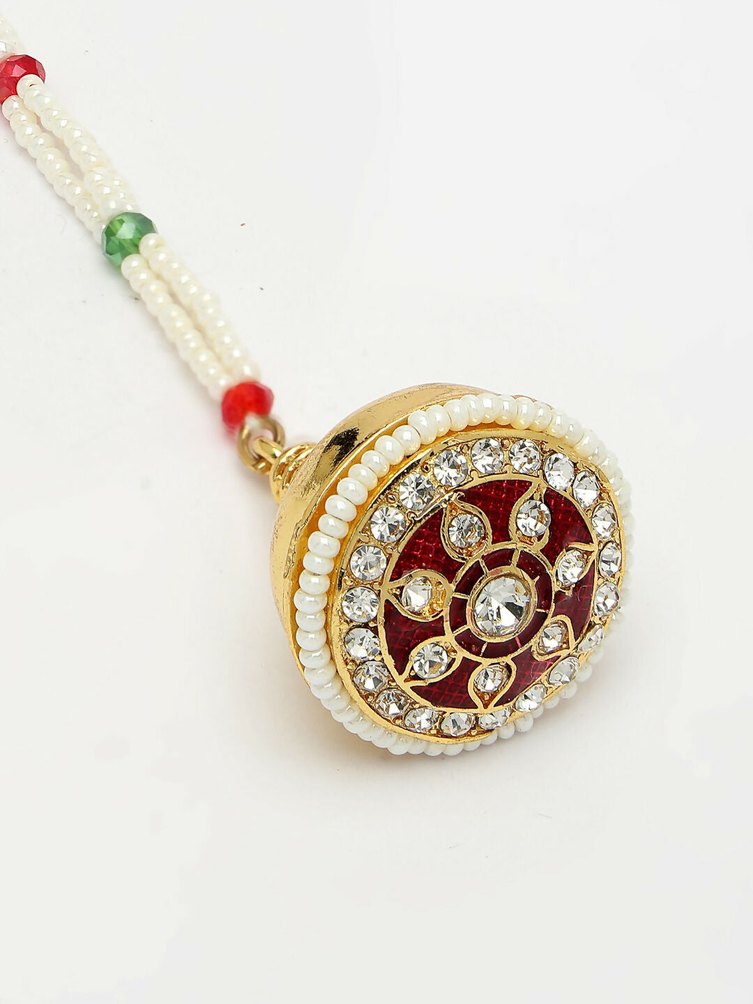 NVR Women's Gold-Polished CZ Stone-Studded Borla Maang Tikka