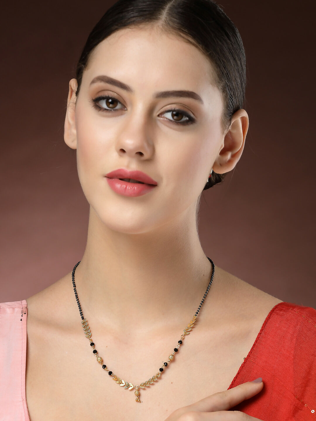 NVR Women's Short Mangalsutra Designs Gold-Polished & Black Beaded Mangalsutra