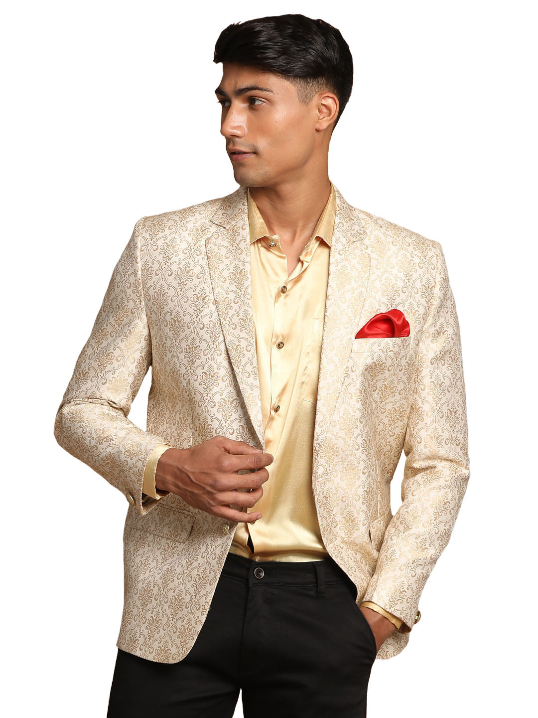 Vastramay Men's Gold And Beige Blazer