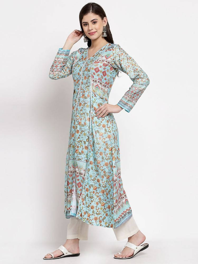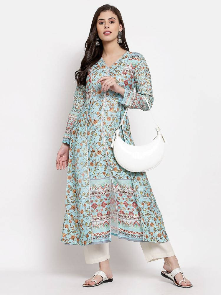 Myshka Women's Multi Cotton Printed Full Sleeve V Neck Casual Kurta