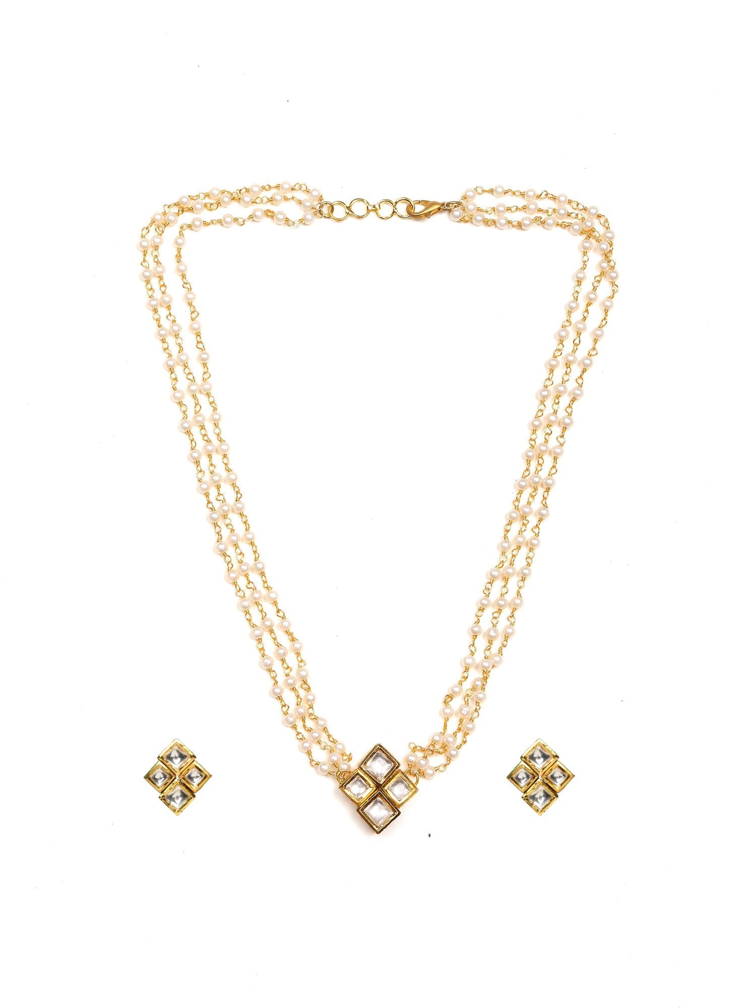 Kundan in Pearl String with Matching Studs - Ruby Raang