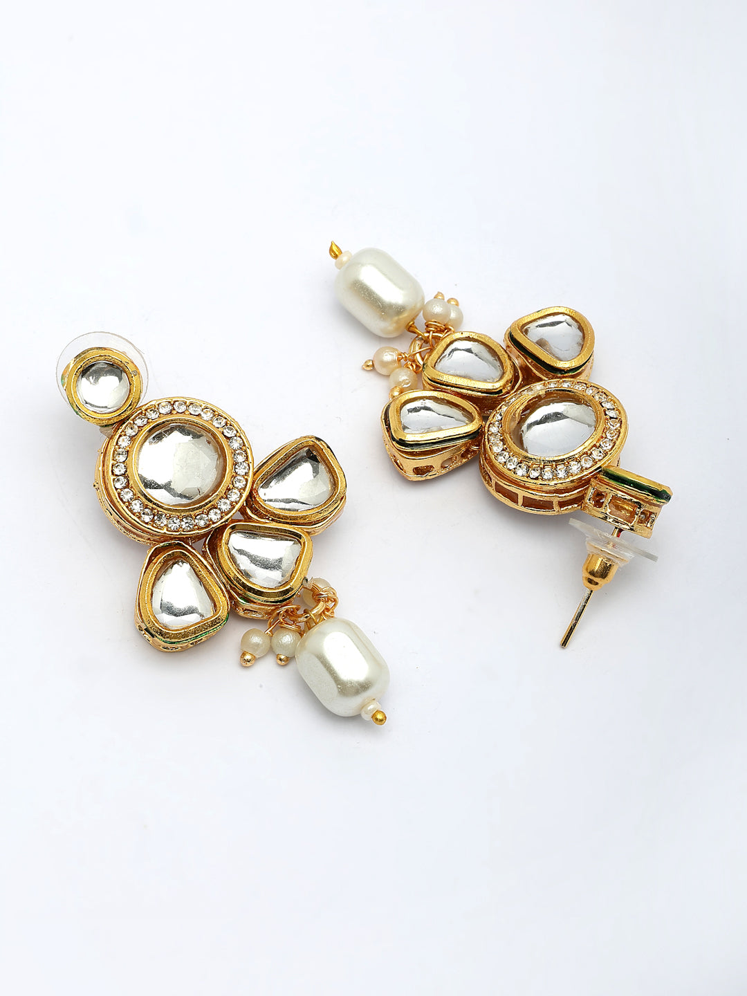 NVR Women Gold-Polished Kundan Studded & Pearls Long Jewellery Set