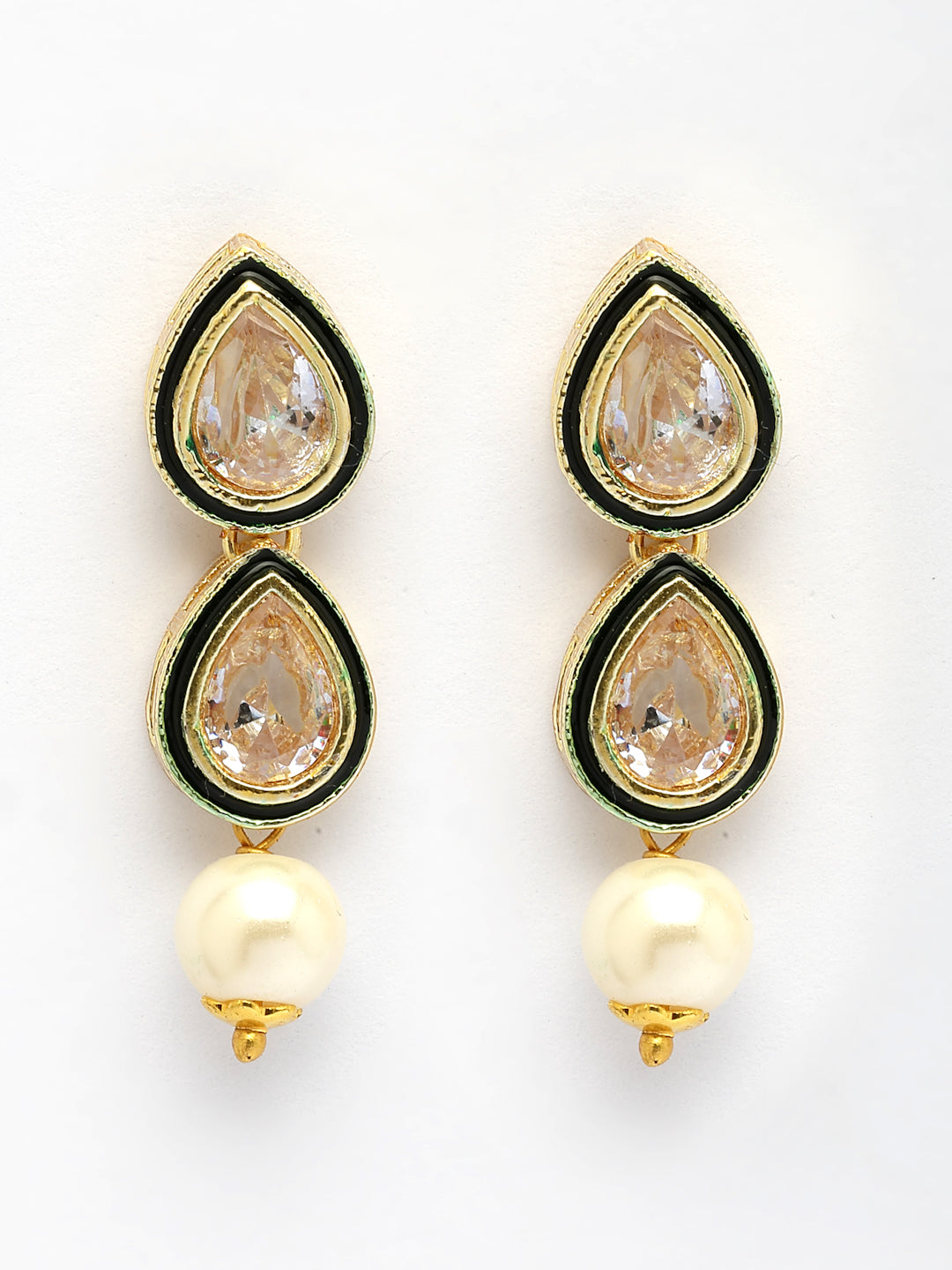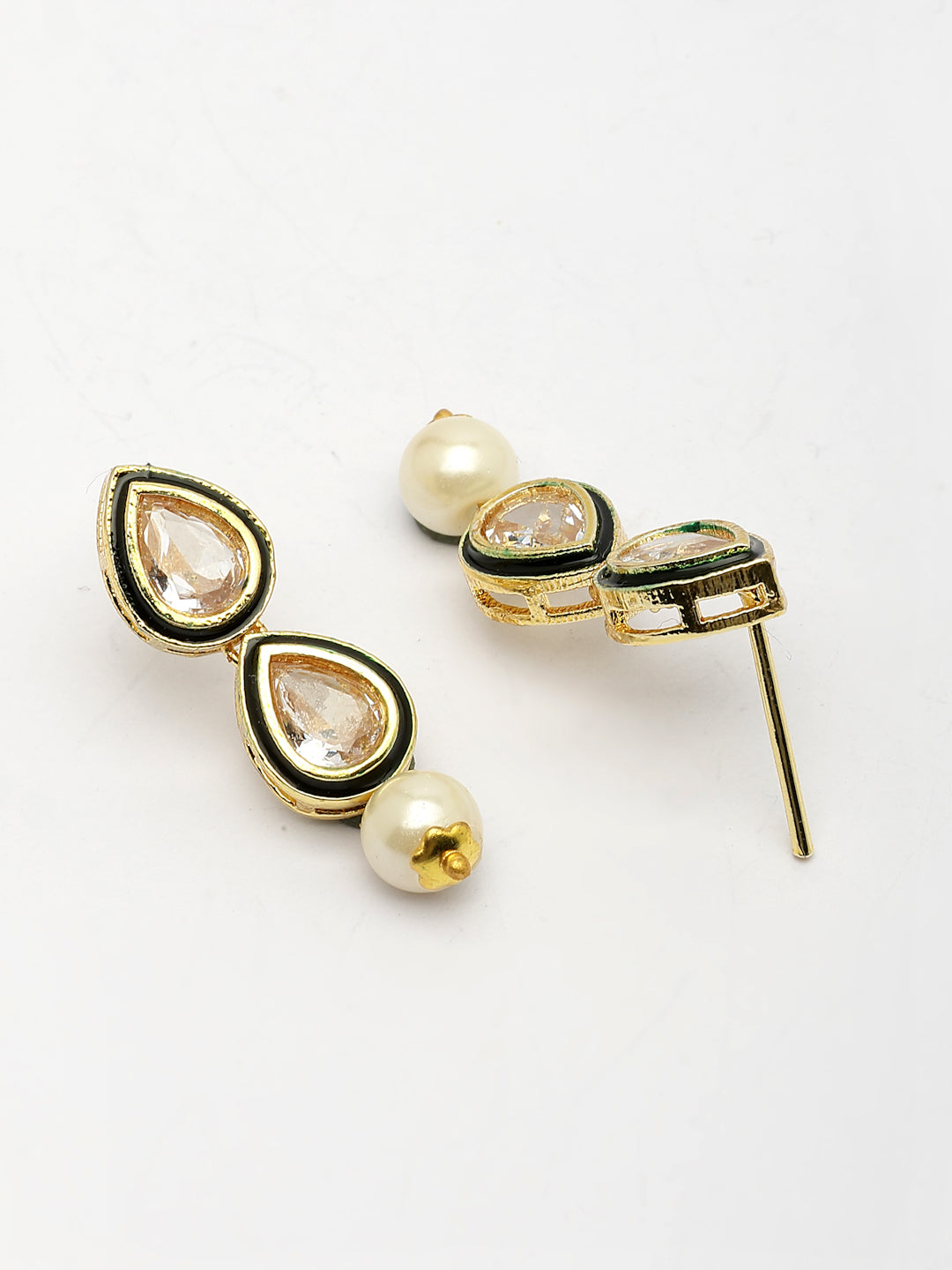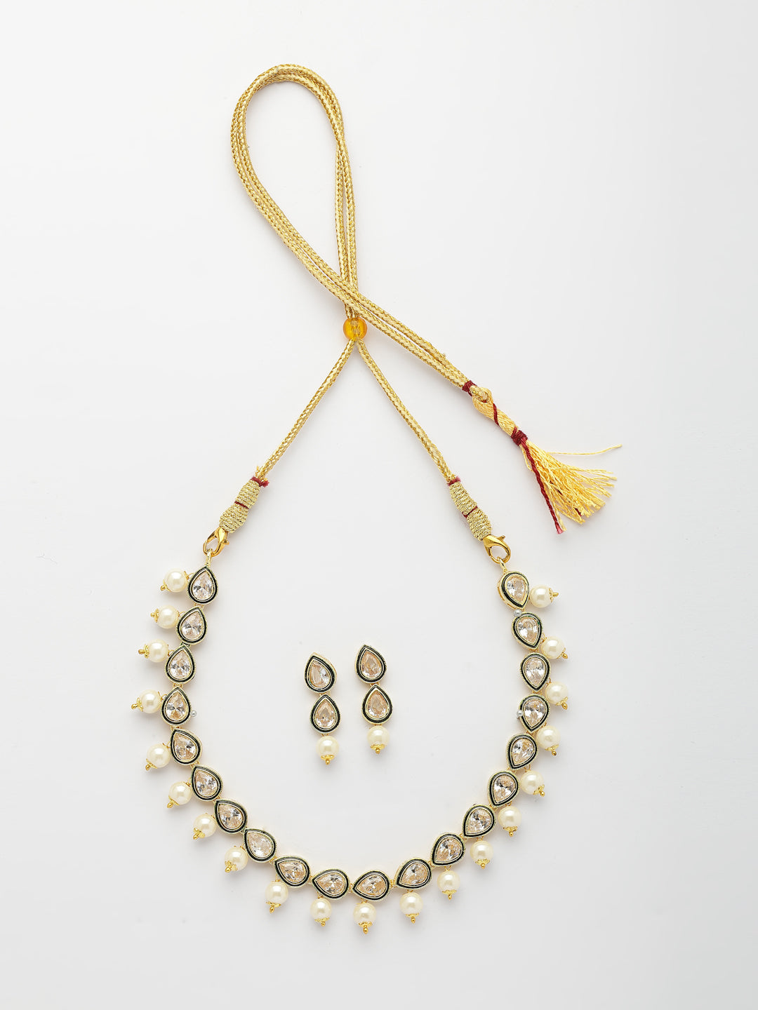 NVR Women Gold-Polished Pear Shape Kundan Studded Short Jewellery Set