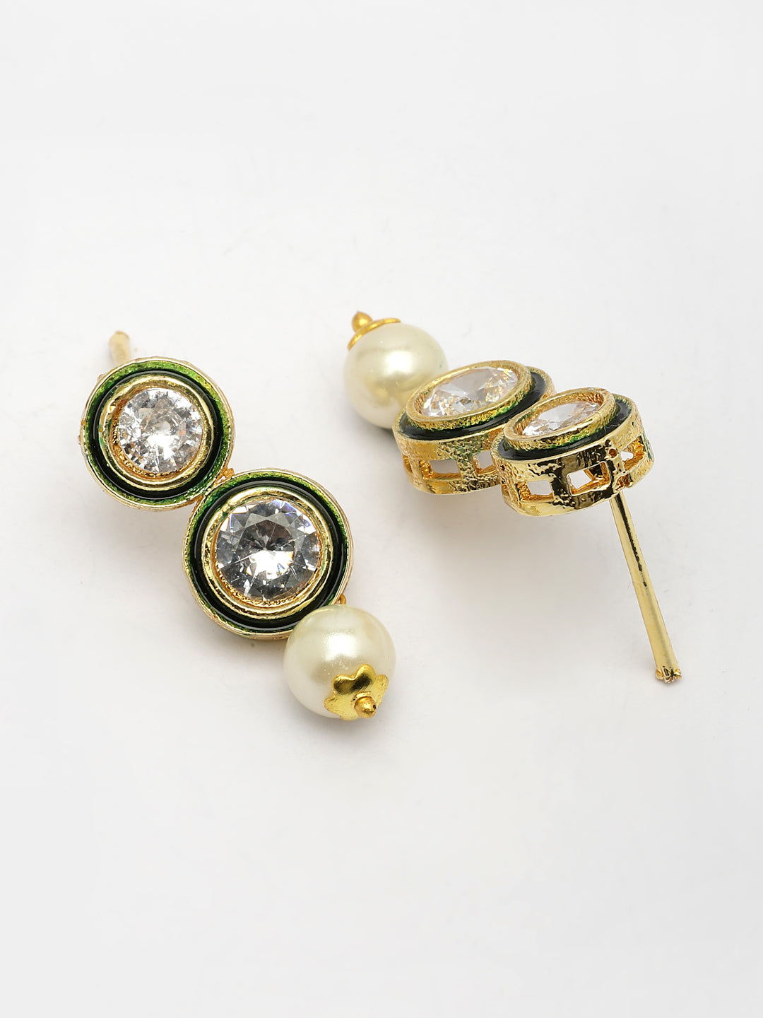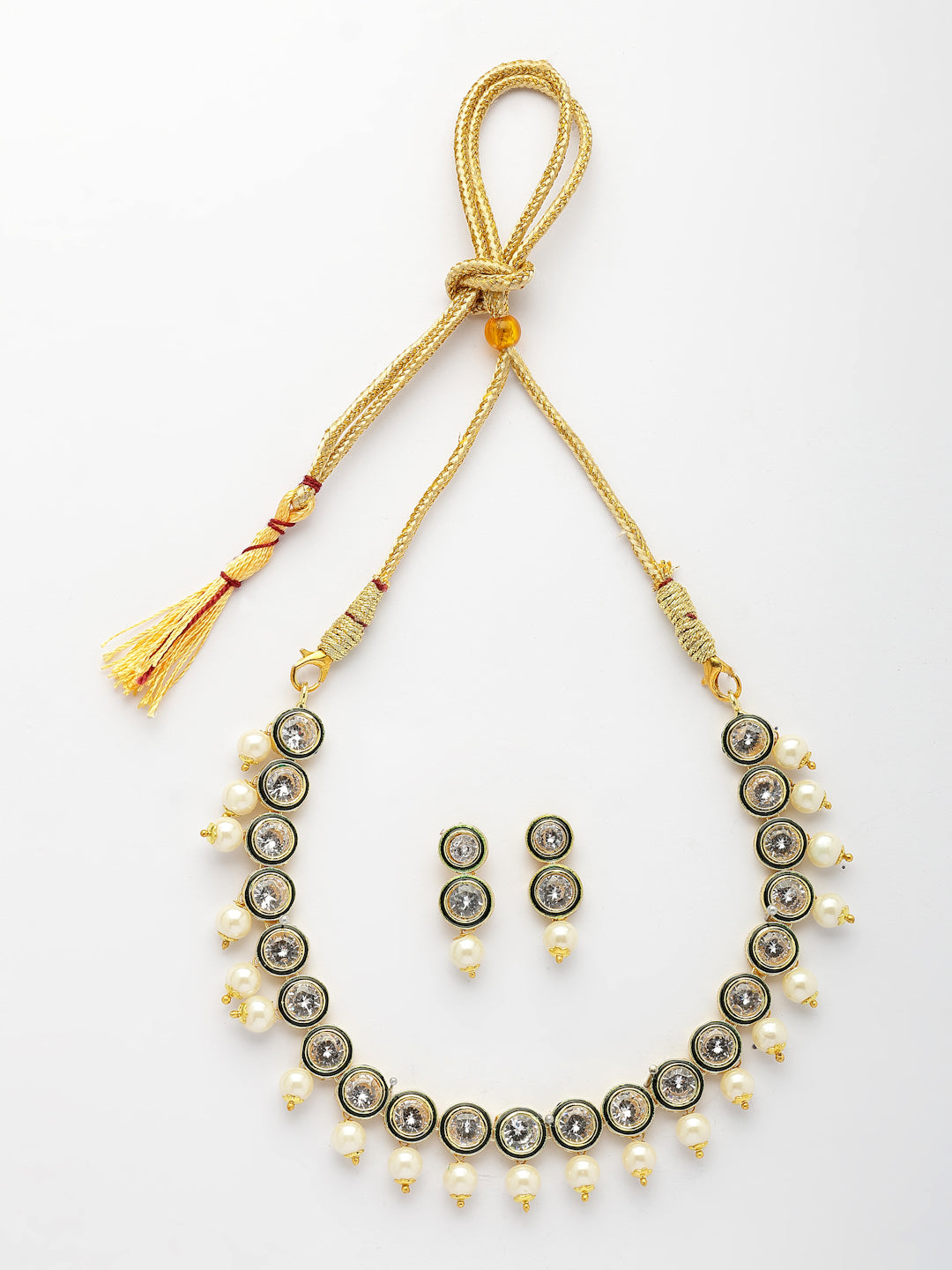 NVR Women Gold-Polished Round Shape Kundan Studded Short Jewellery Set