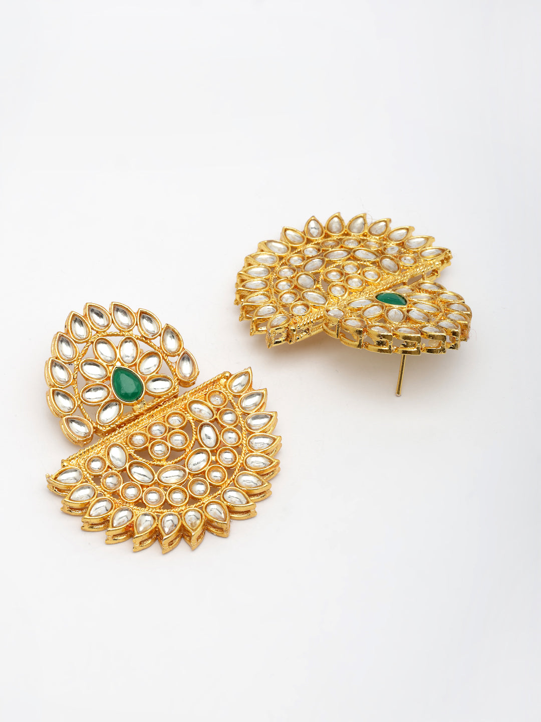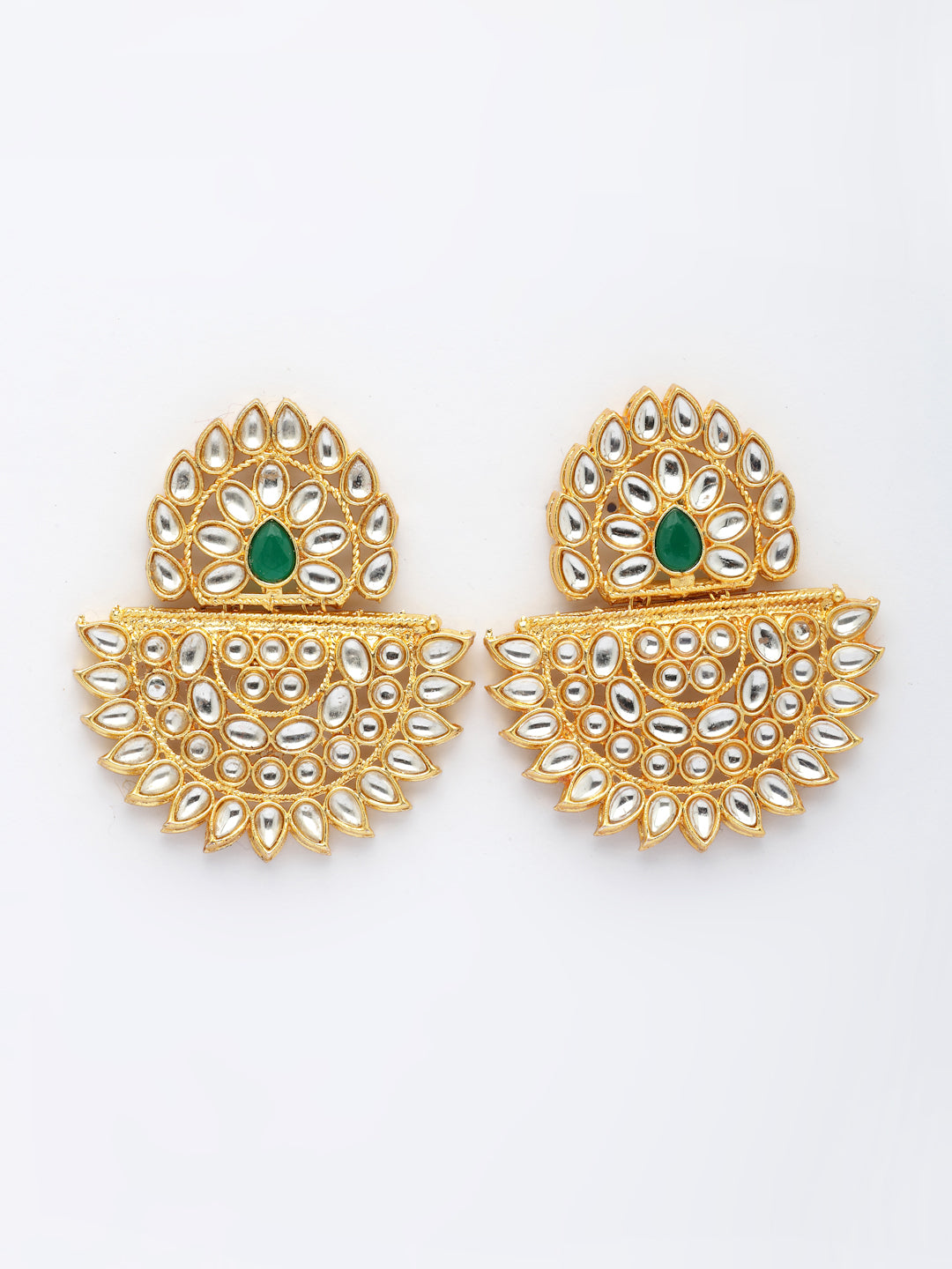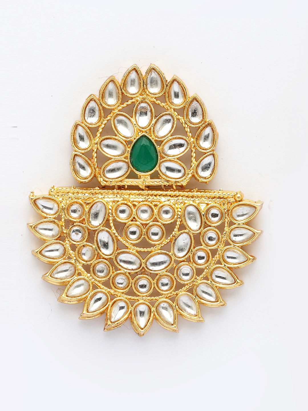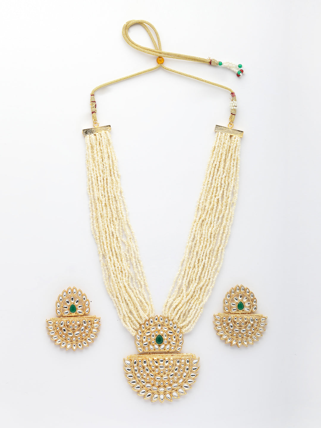 NVR Women's Gold Toned Green Stones & Kundan Studded Jewellery Set