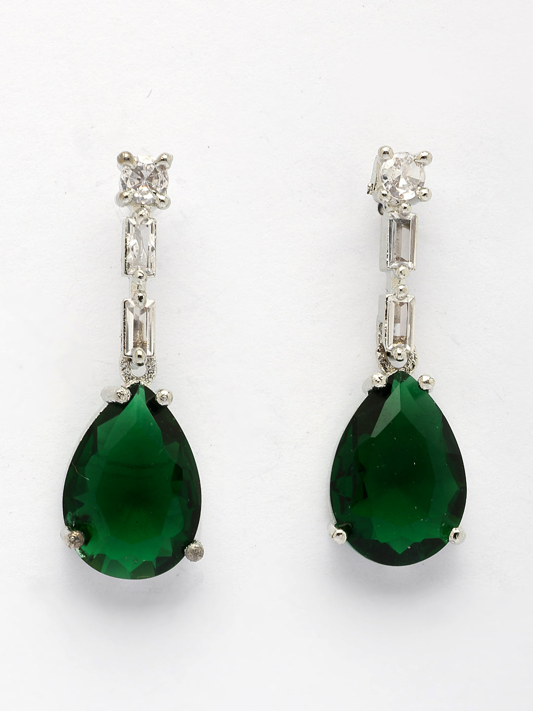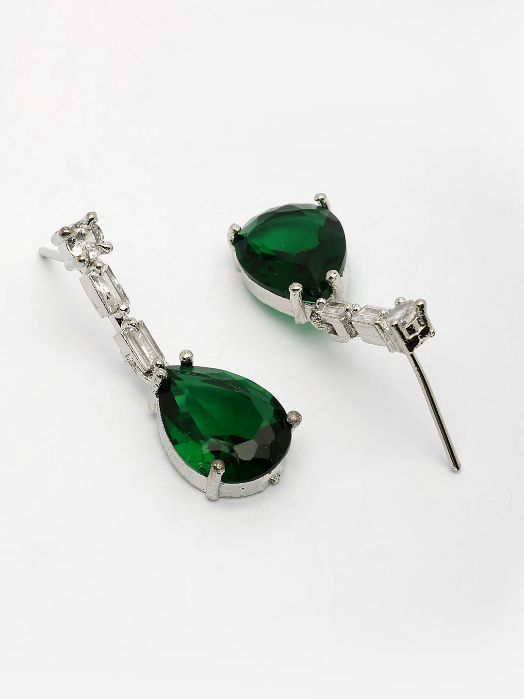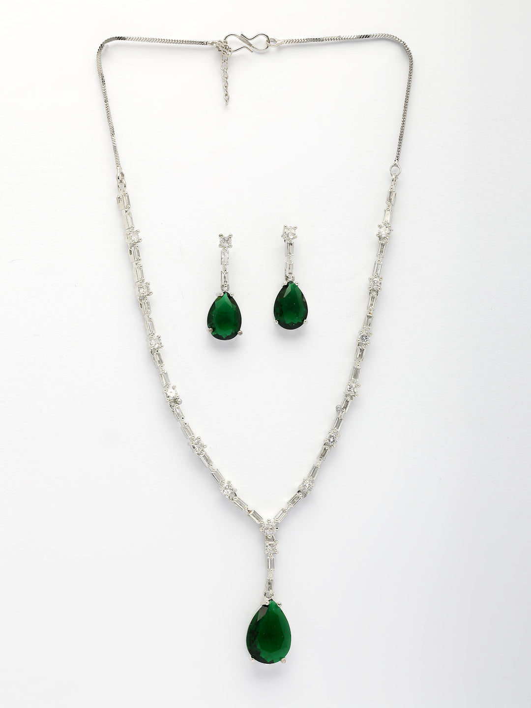 NVR Women's Silver-Plated Dark Green American Diamond-Studded Handcrafted Jewellery Set