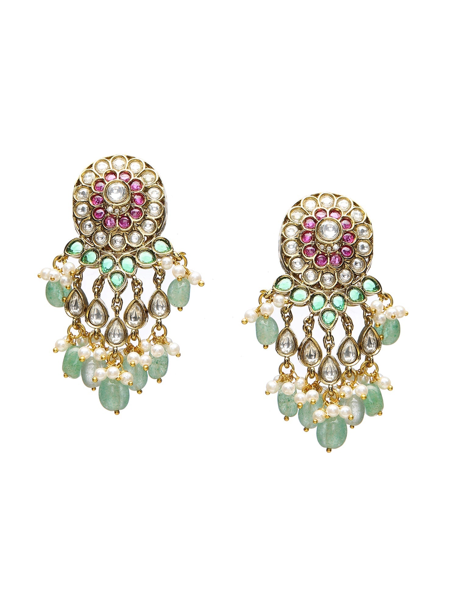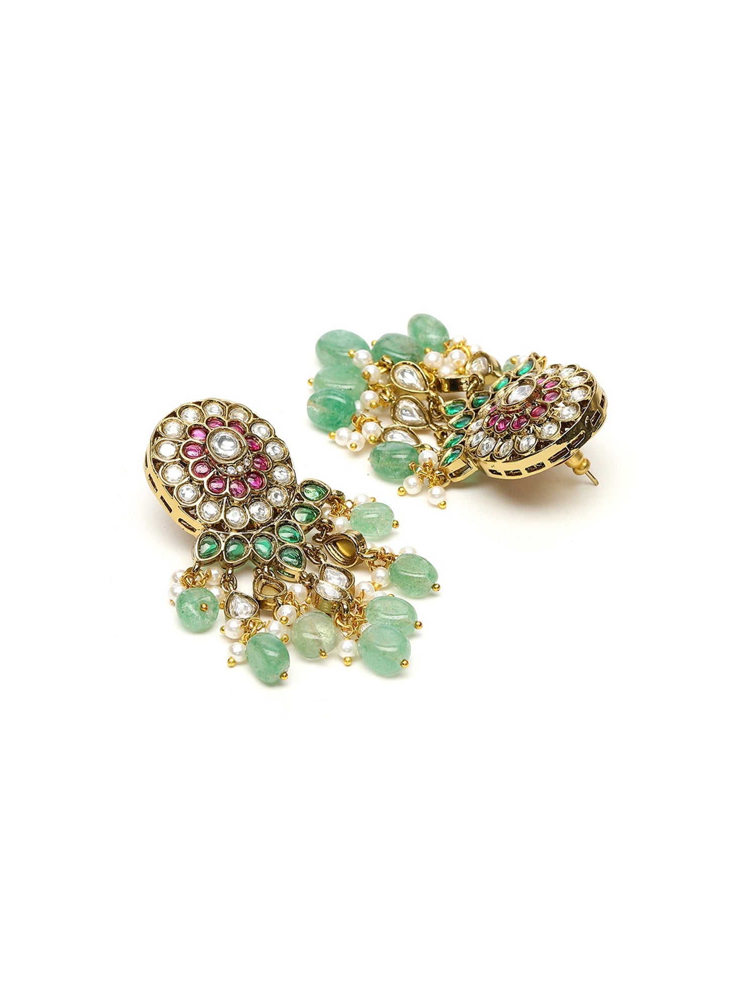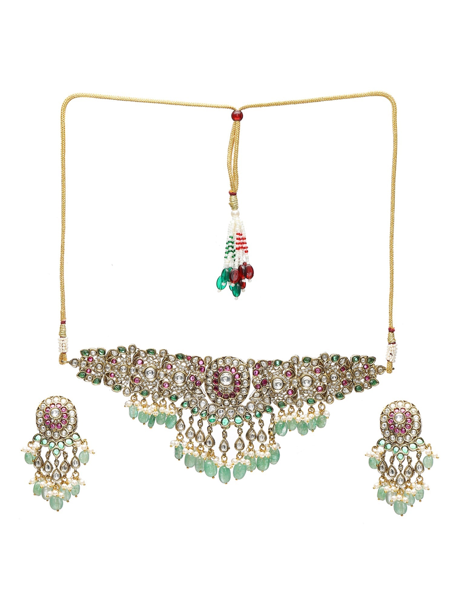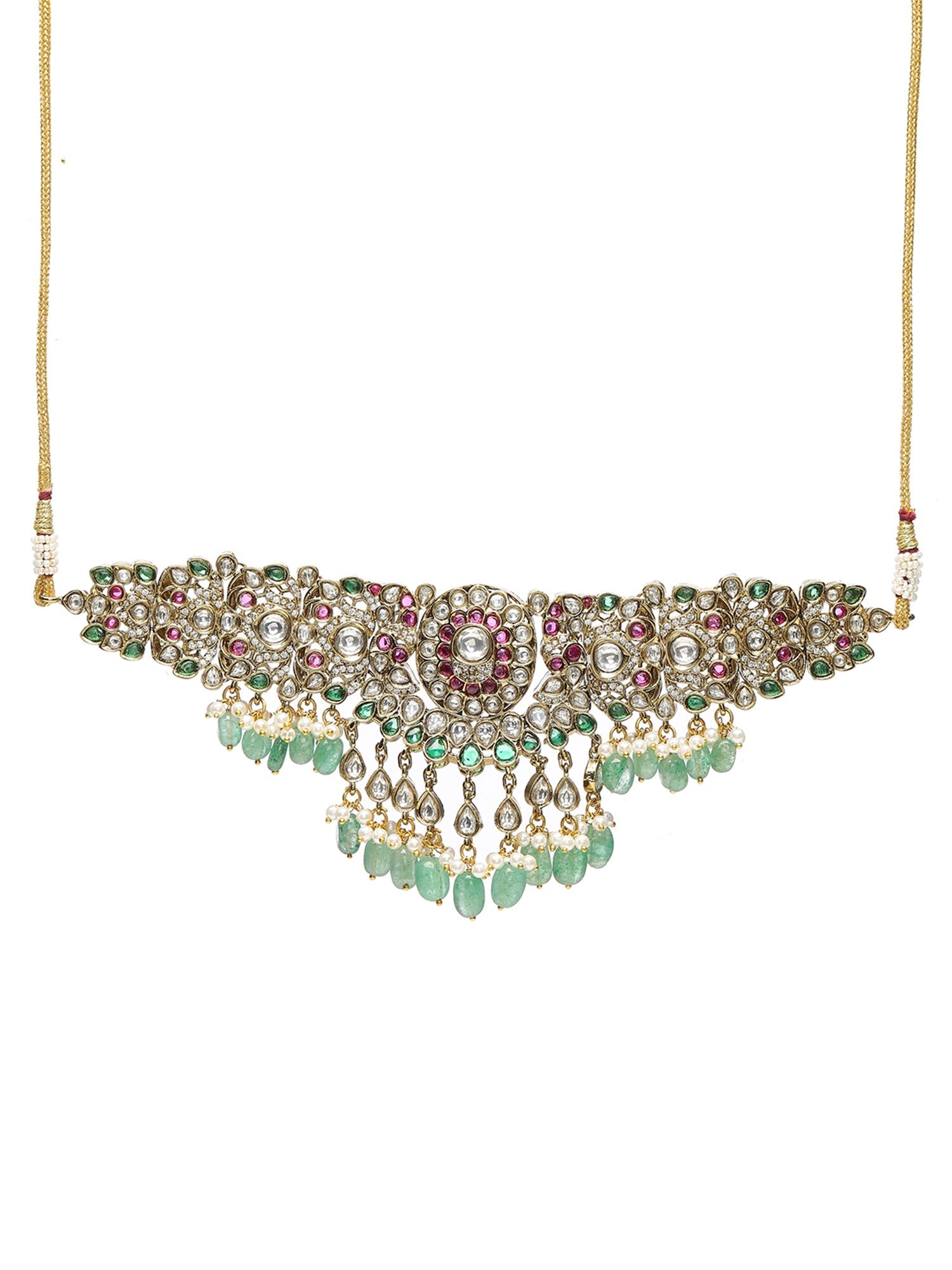 Precious Handcrafted Stone Neckpiece with Emeralds - Ruby Raang