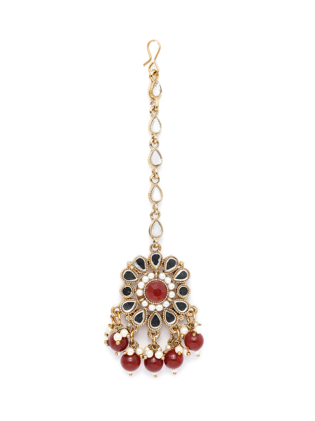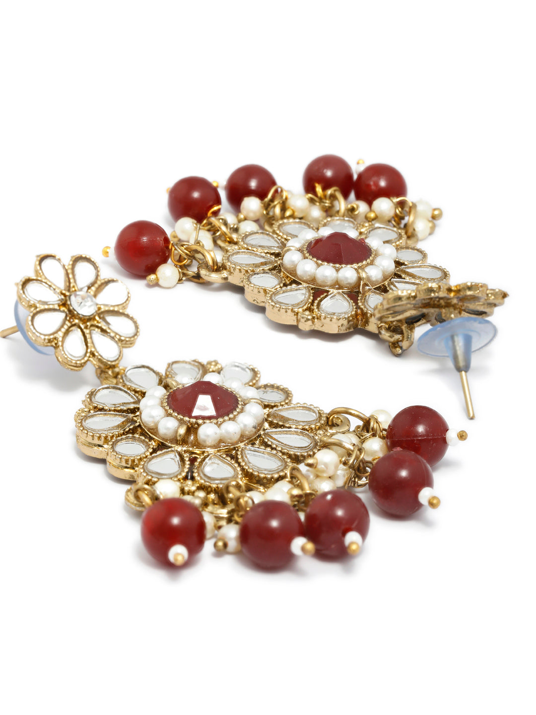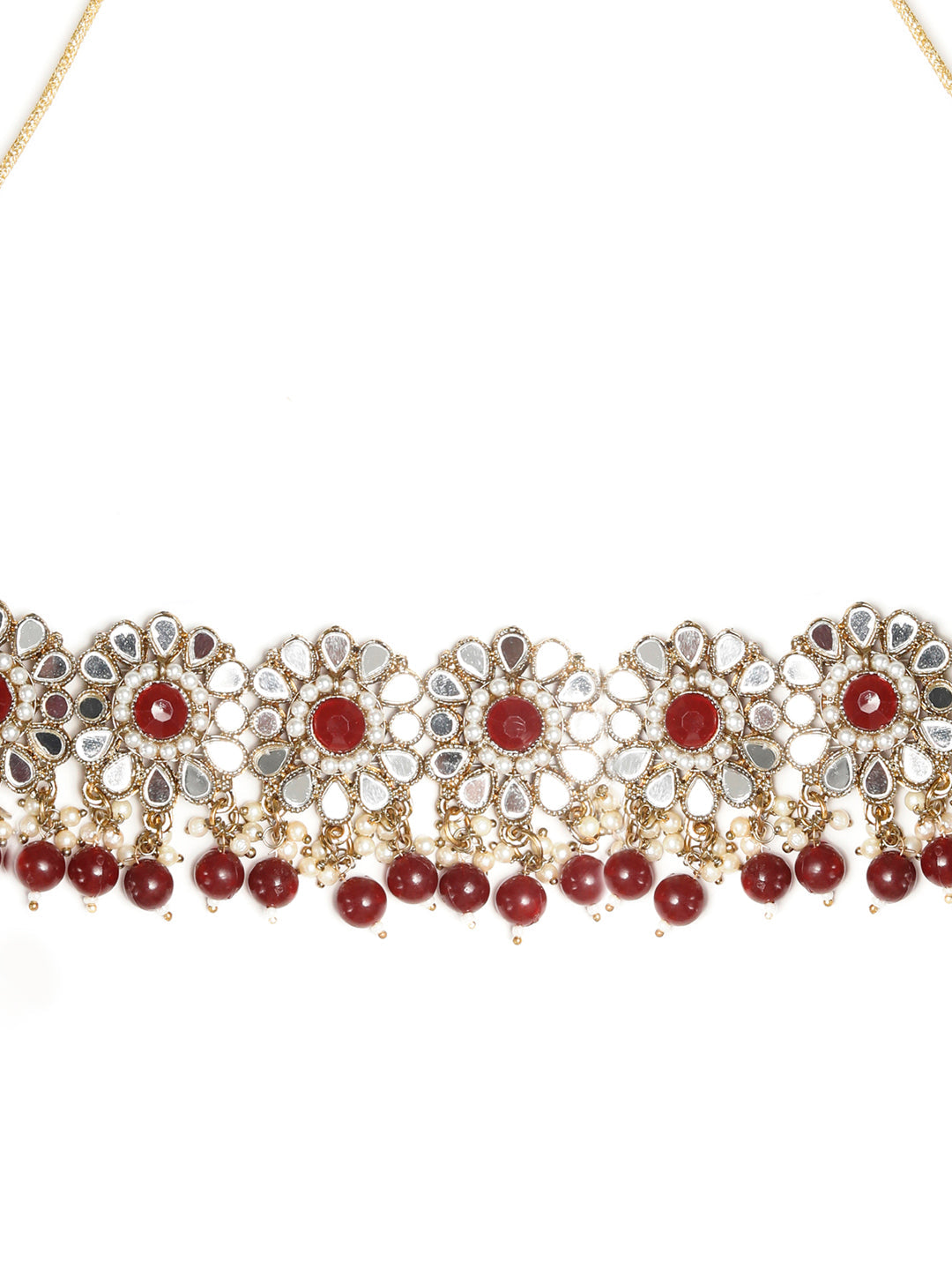 Priyaasi Women Mirror Studded Maroon Floral Jewellery Set