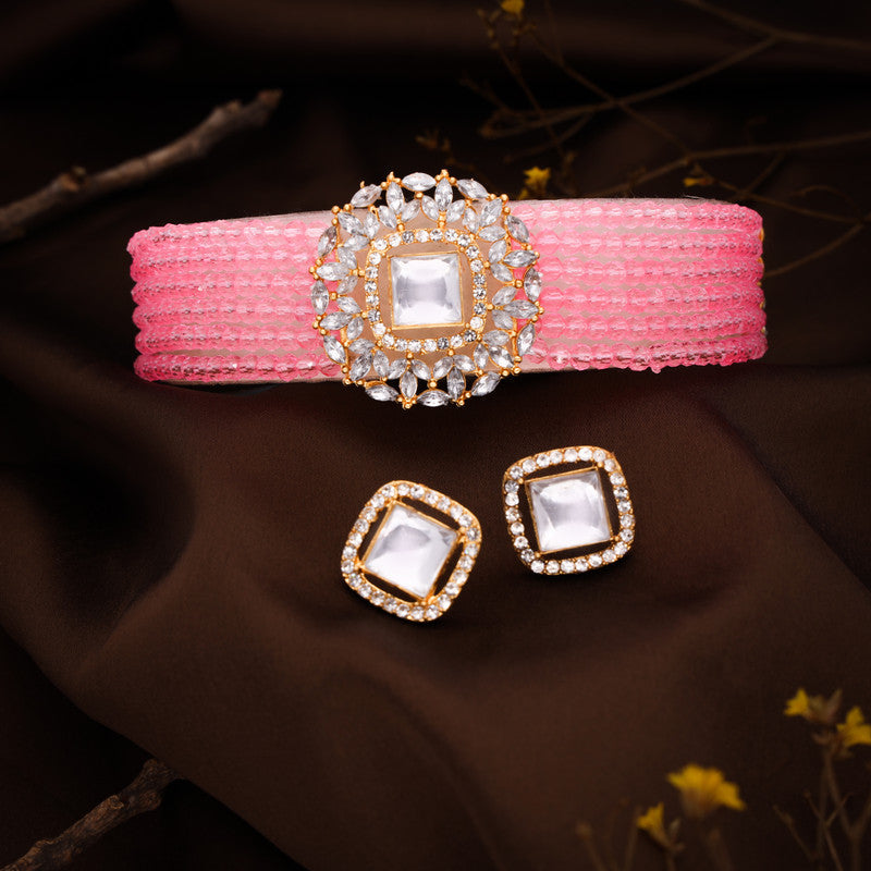 Tehzeeb Creations Brass Gold-Polished Gold, Pink, White Jewel Set