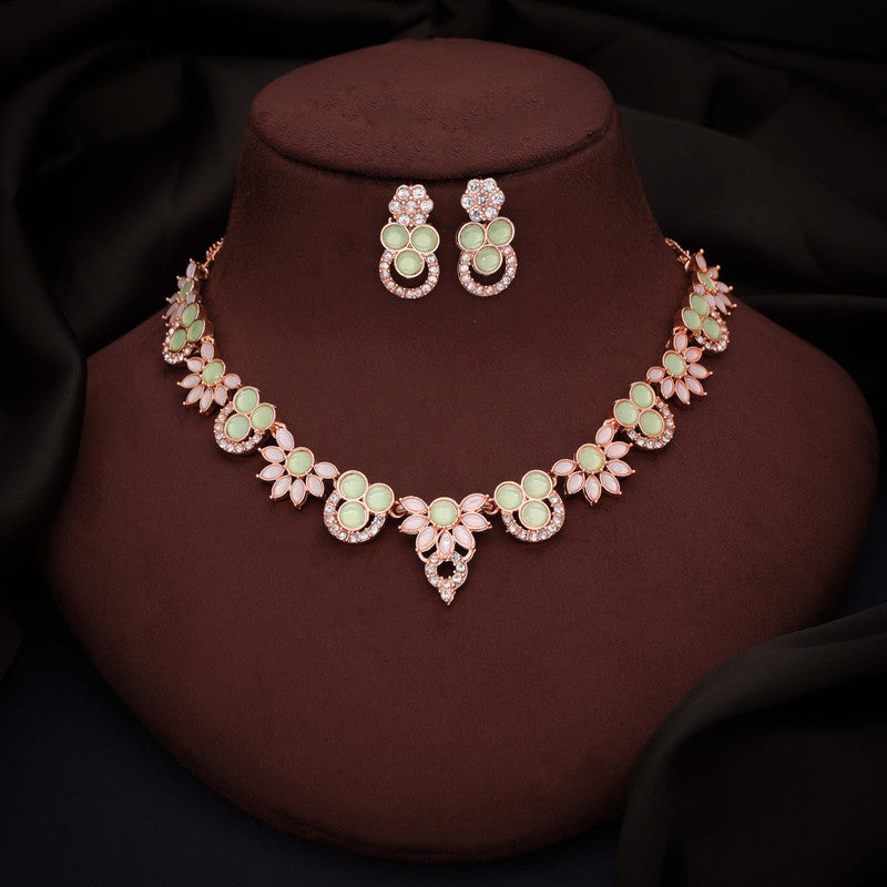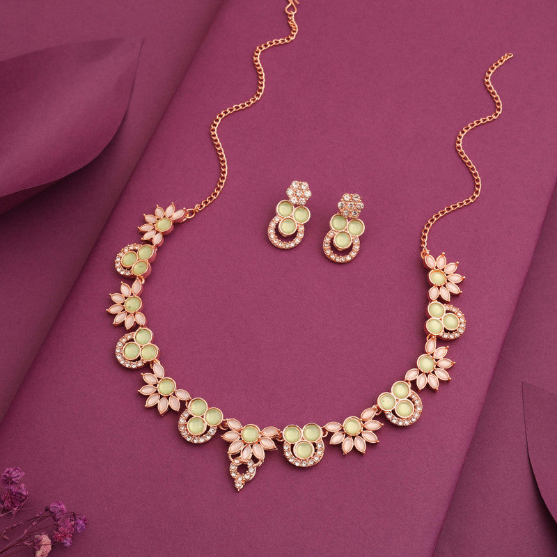 Tehzeeb Creations Gold Pleate Sea Green Choker Necklace With Stud