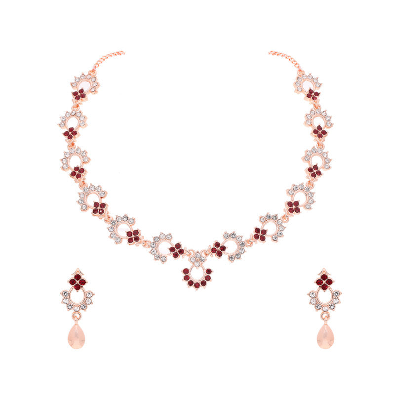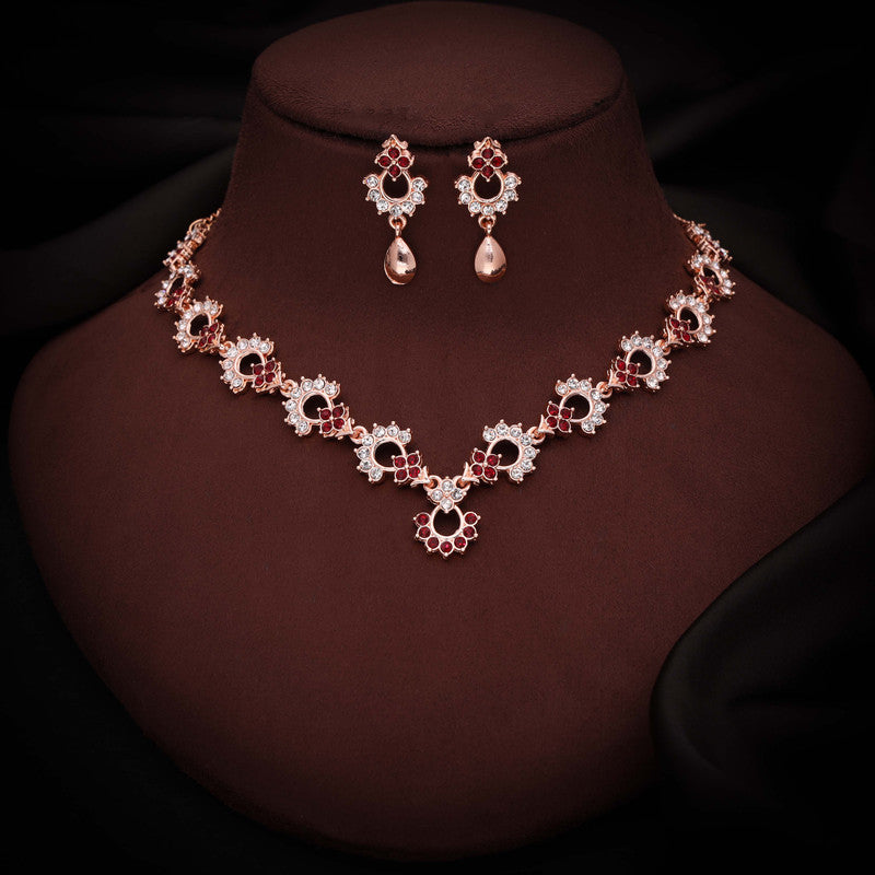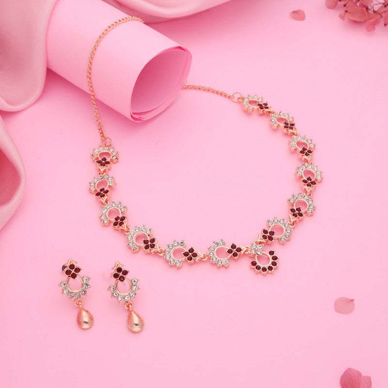 Tehzeeb Creations Gold-Polished Maroon Diamond Necklace With Earrings