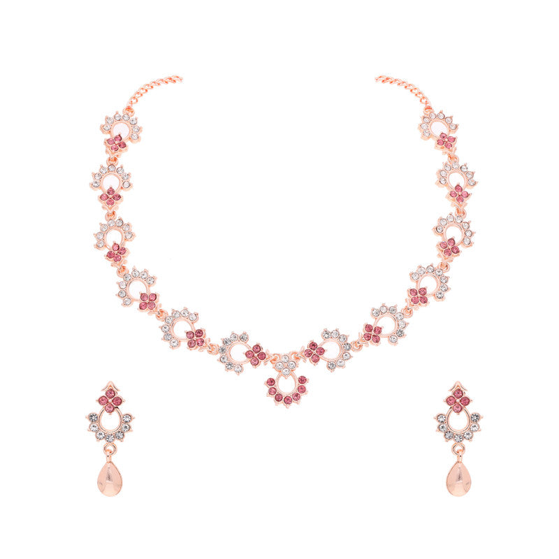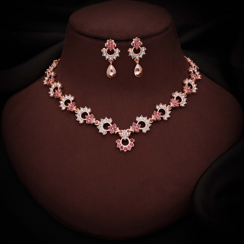 Tehzeeb Creations Gold-Polished Pink Diamond Necklace With Earrings