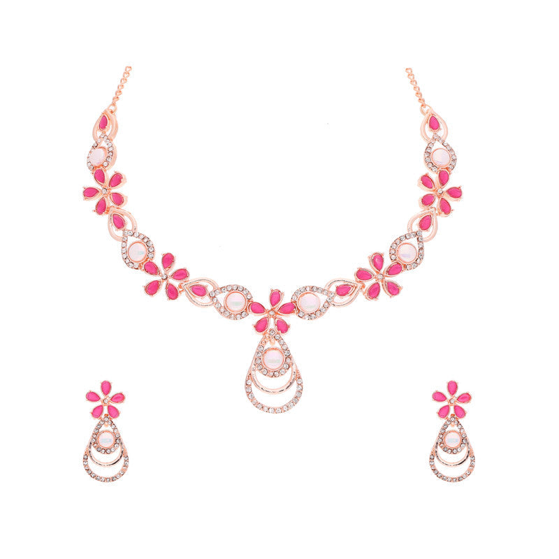 Tehzeeb Creations Rose Gold-Polished Pink Colour Necklace With Stud