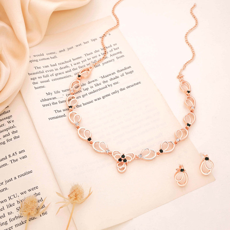 Tehzeeb Creationss Gold-Polished Choker Green Stone Necklace With Stud Earrings