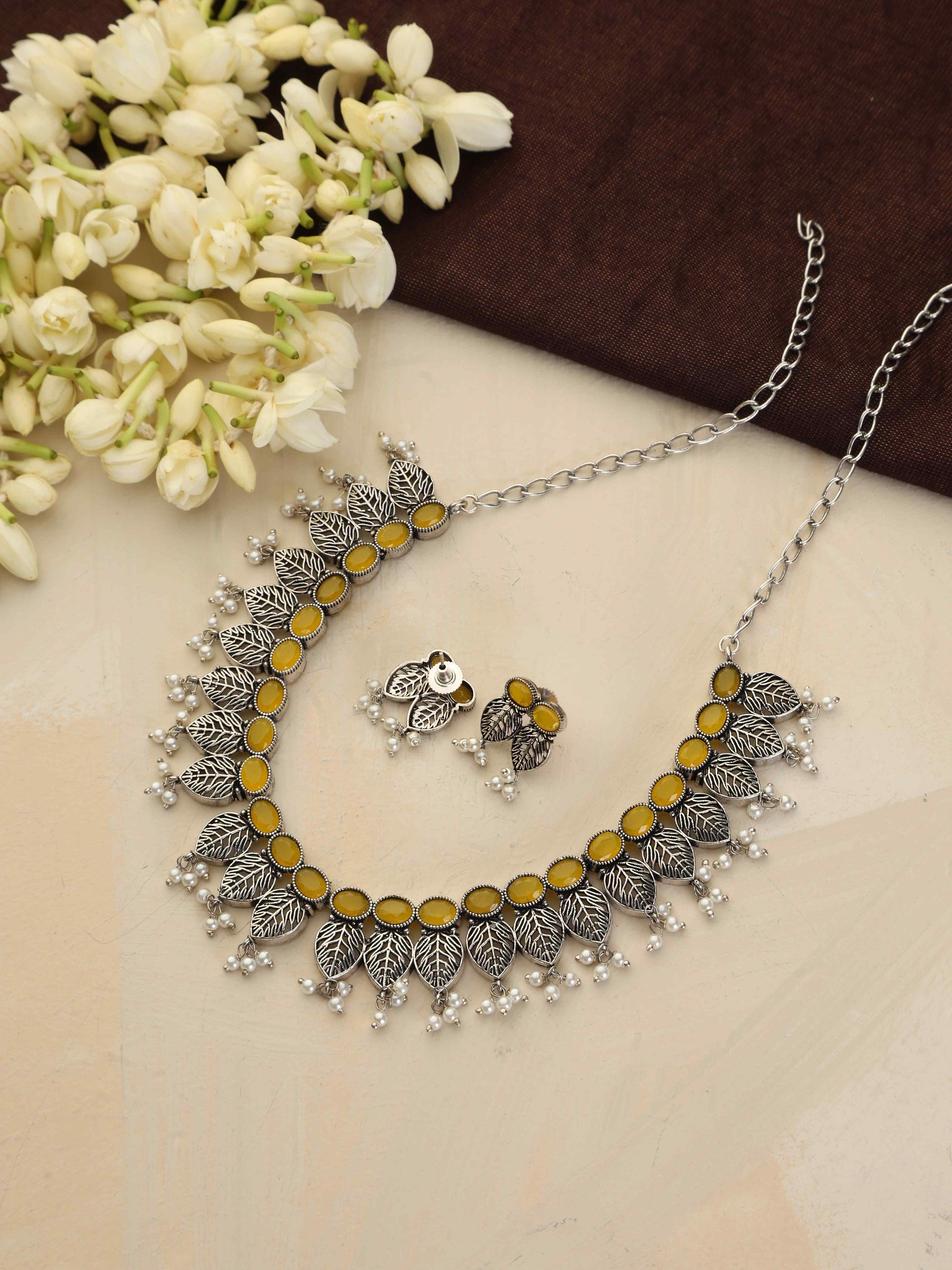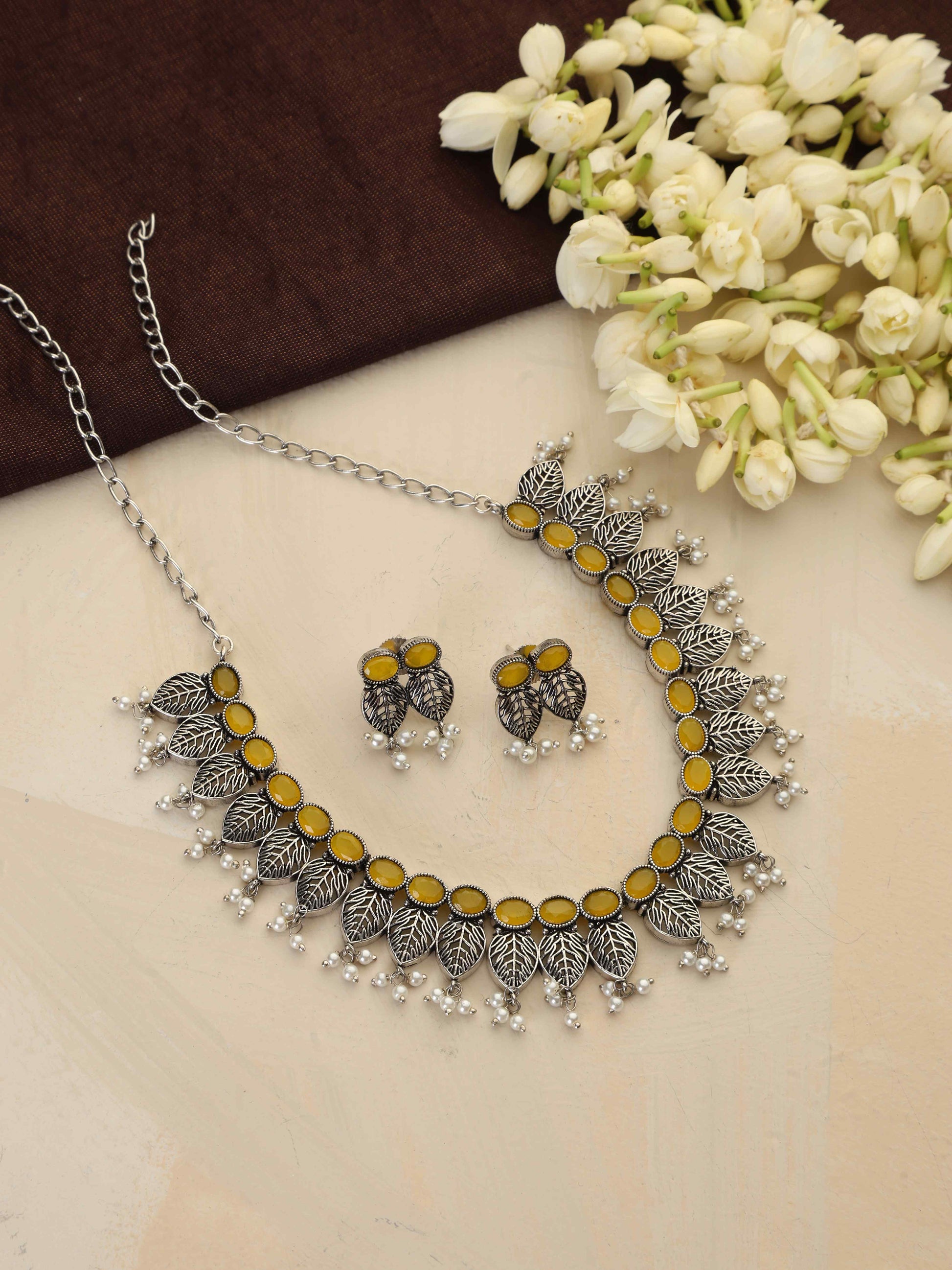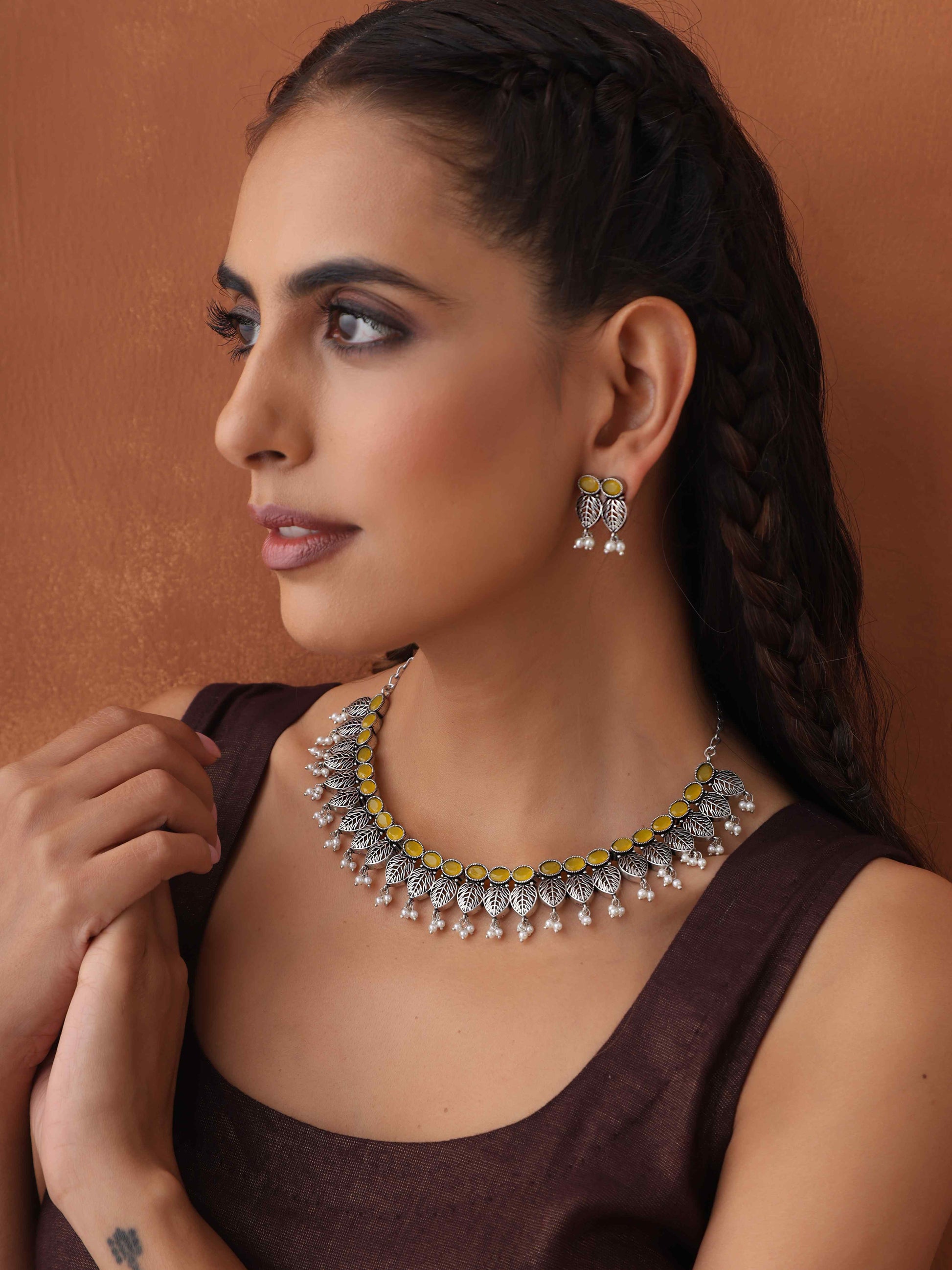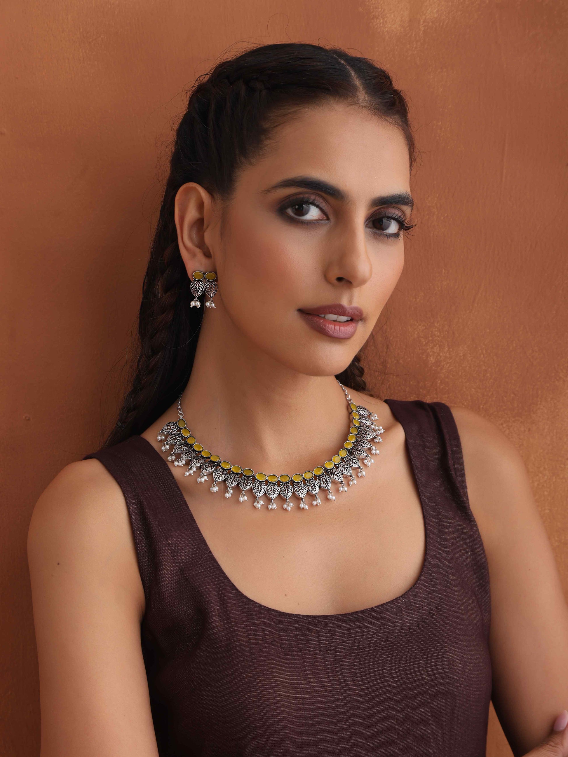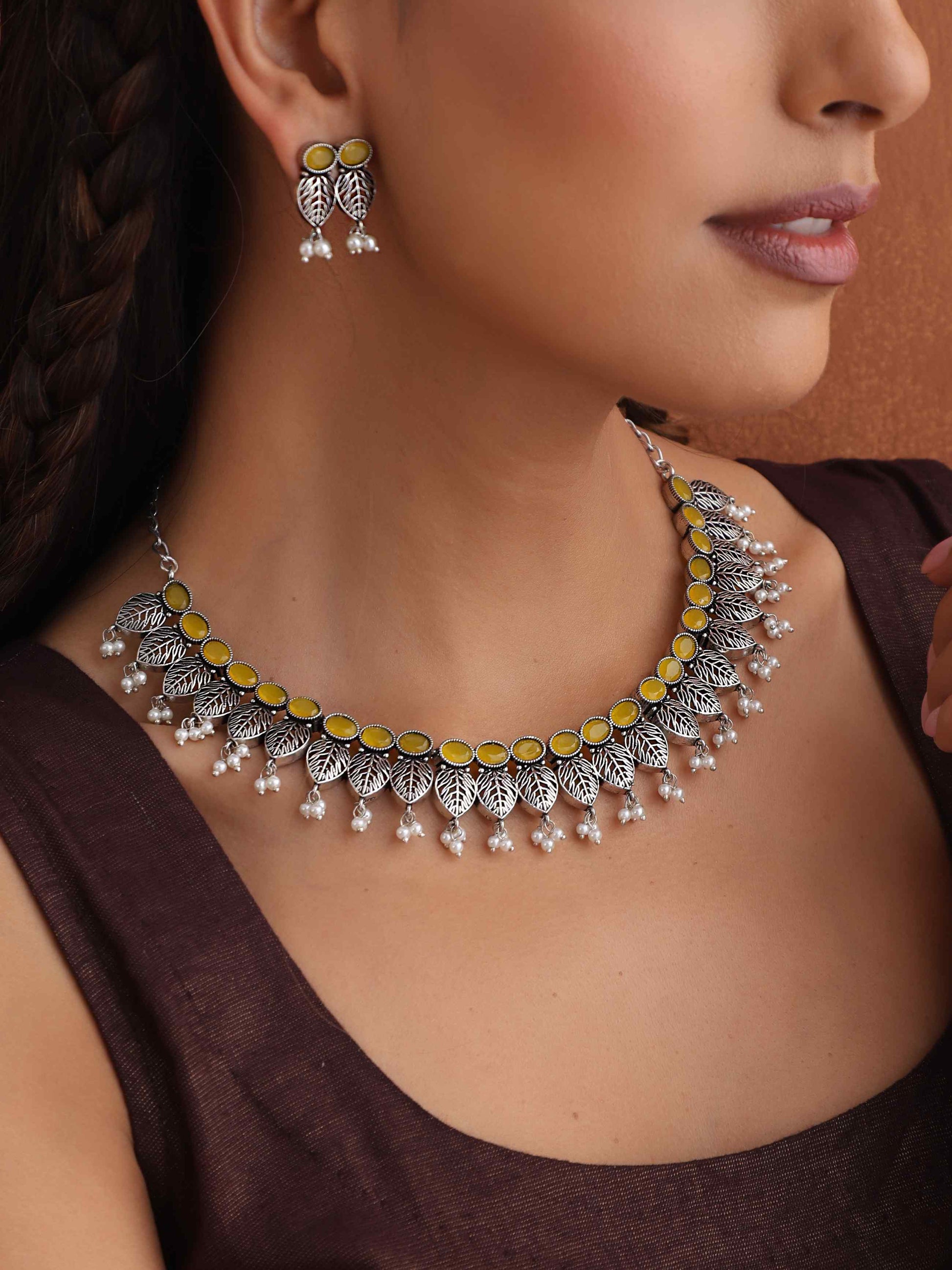 trueBrowns Silver Tone Stone Necklace Set