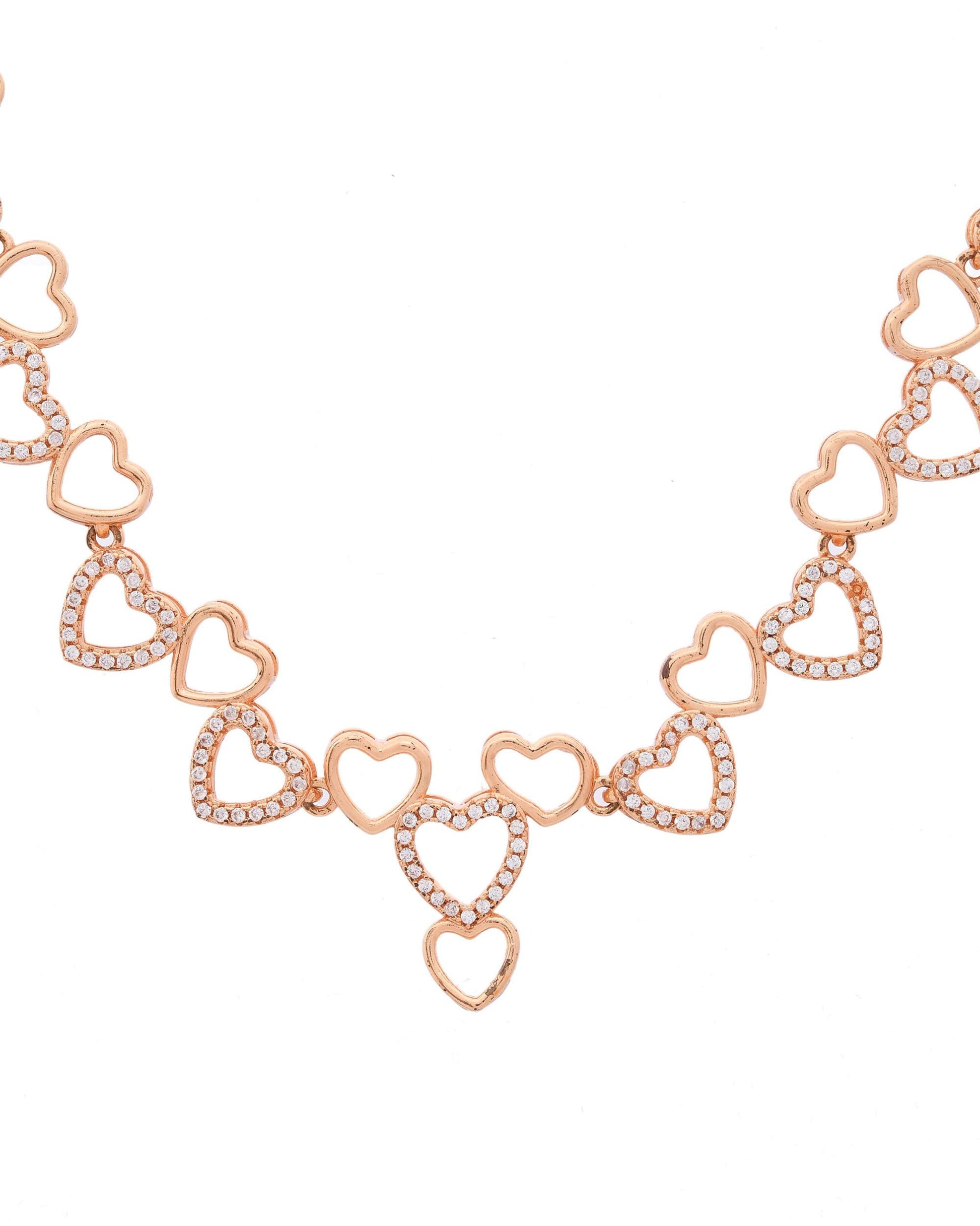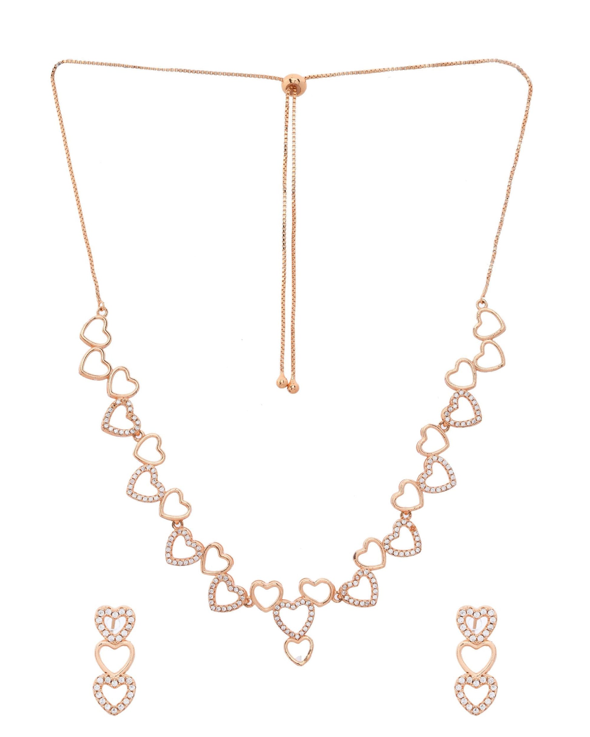 VOJ Ad Stone Studded Heart Shaped Designer Gold-Polished Jewellery Set
