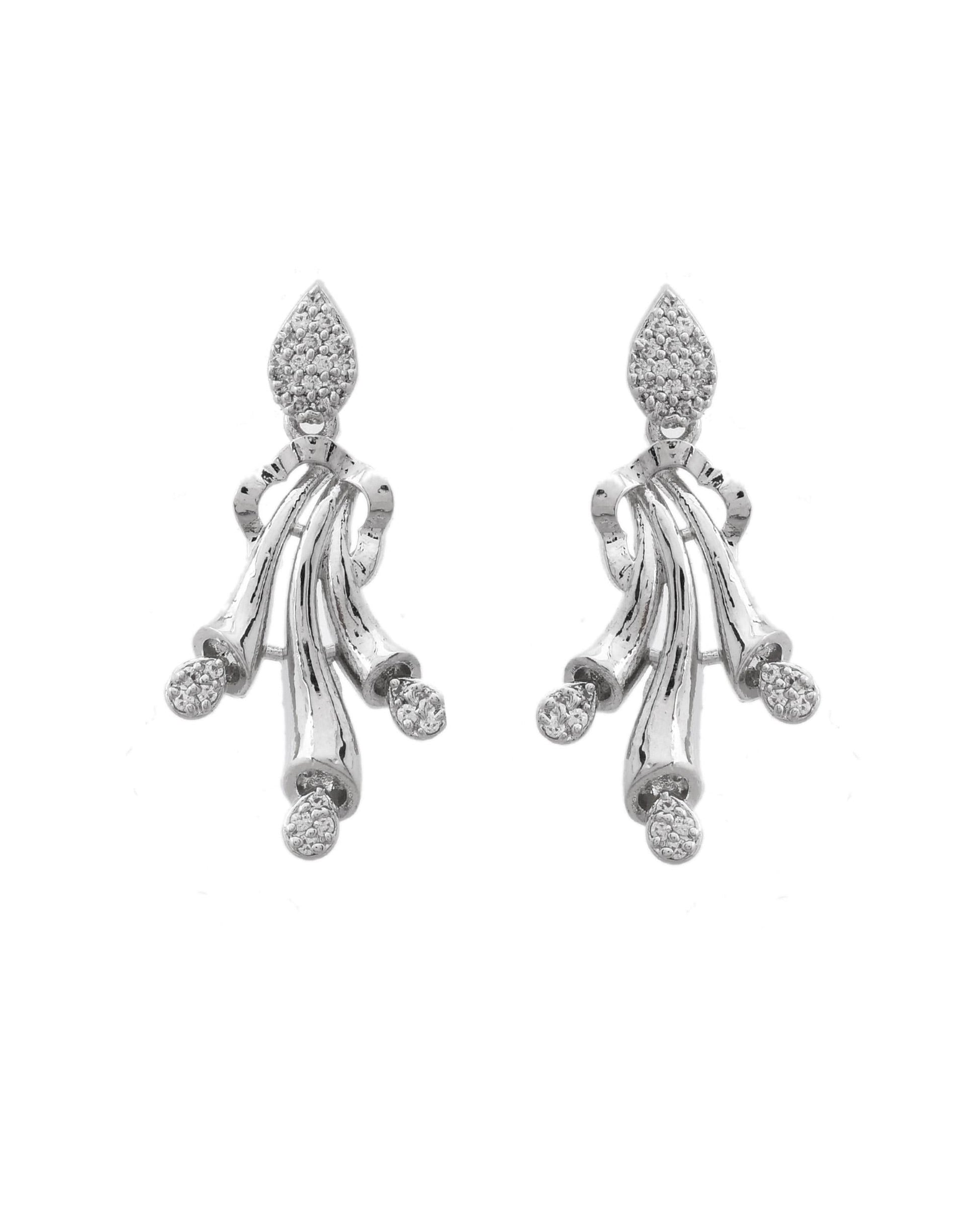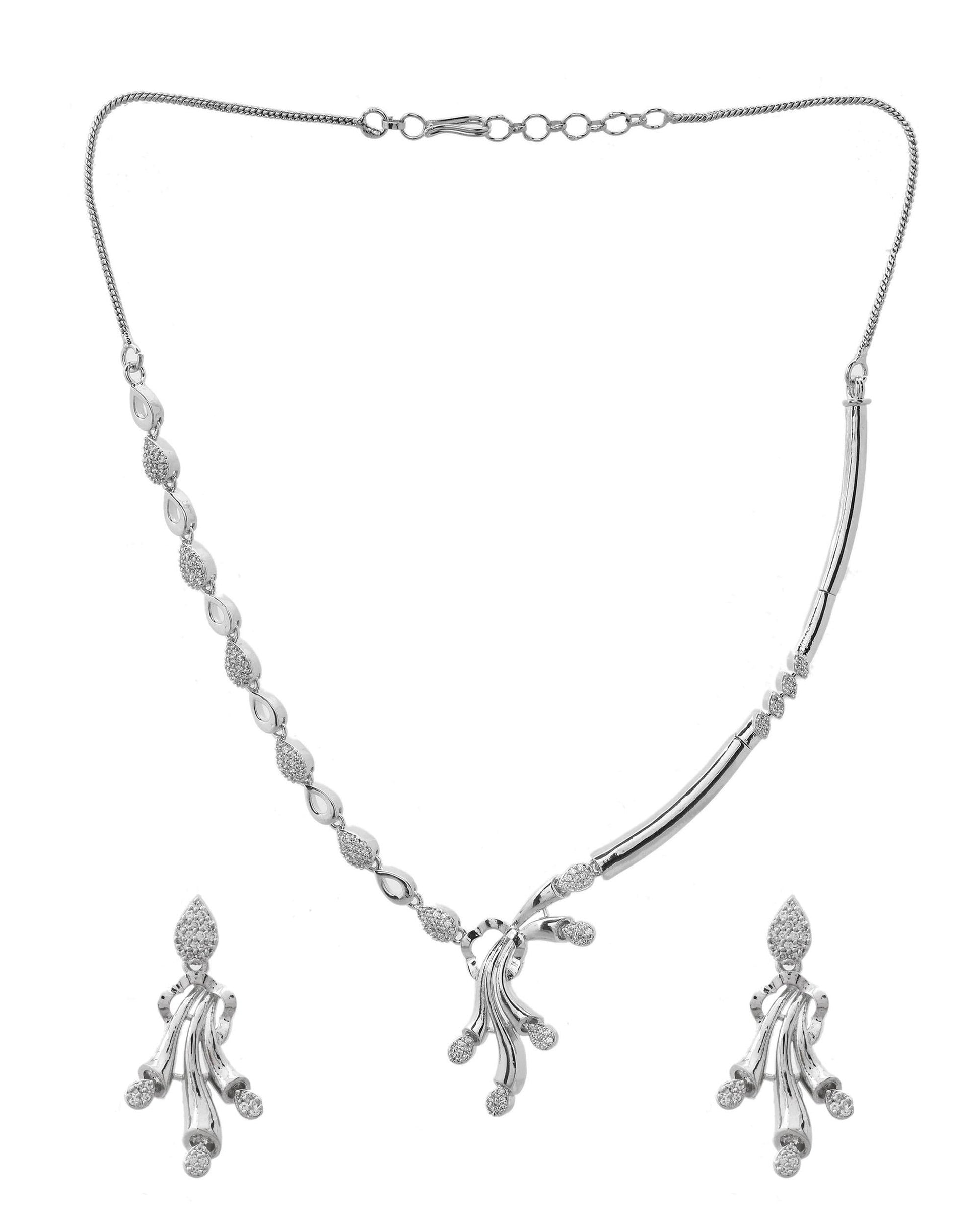 VOJ Silver Plated Ad Stone Studded Designer Necklace With Earrings Set