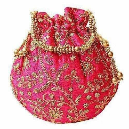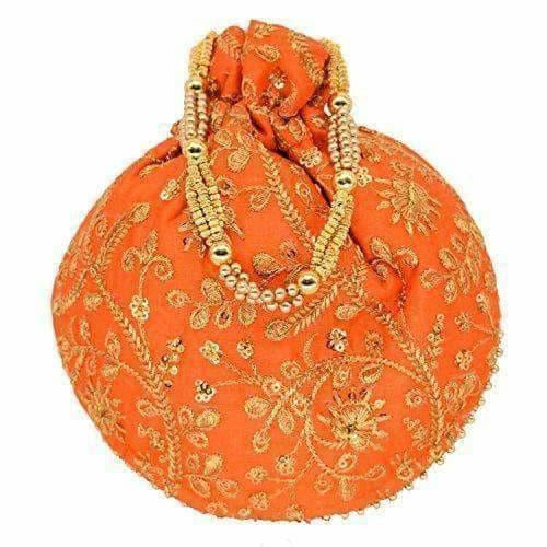 Ethnic Clutch Silk Potli Batwa Pouch Bag with Metal Bead work Gift For Women - Grab2buy