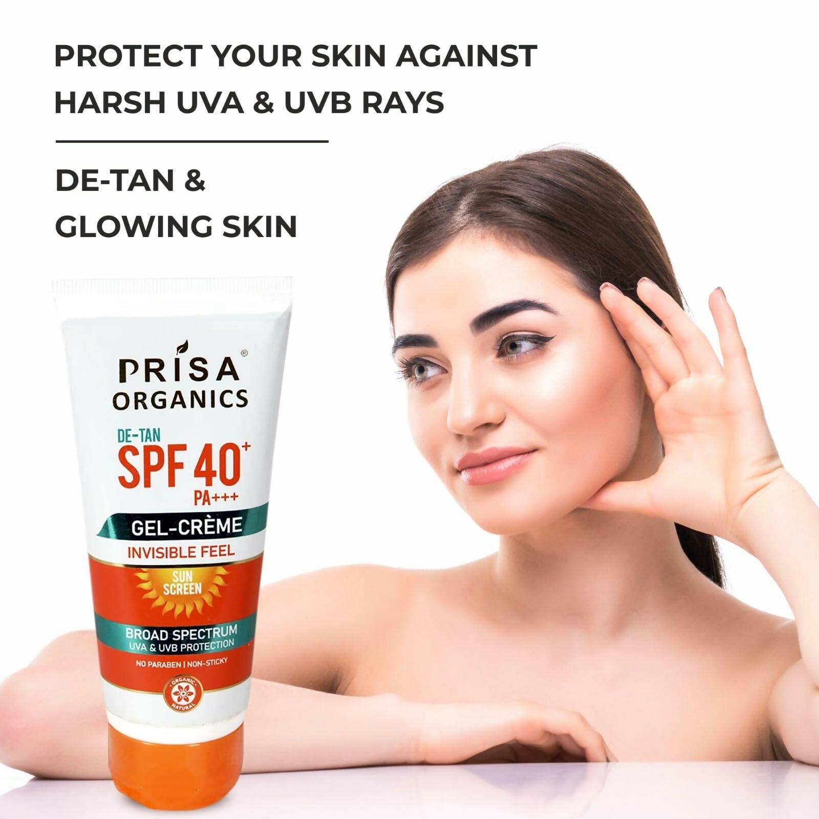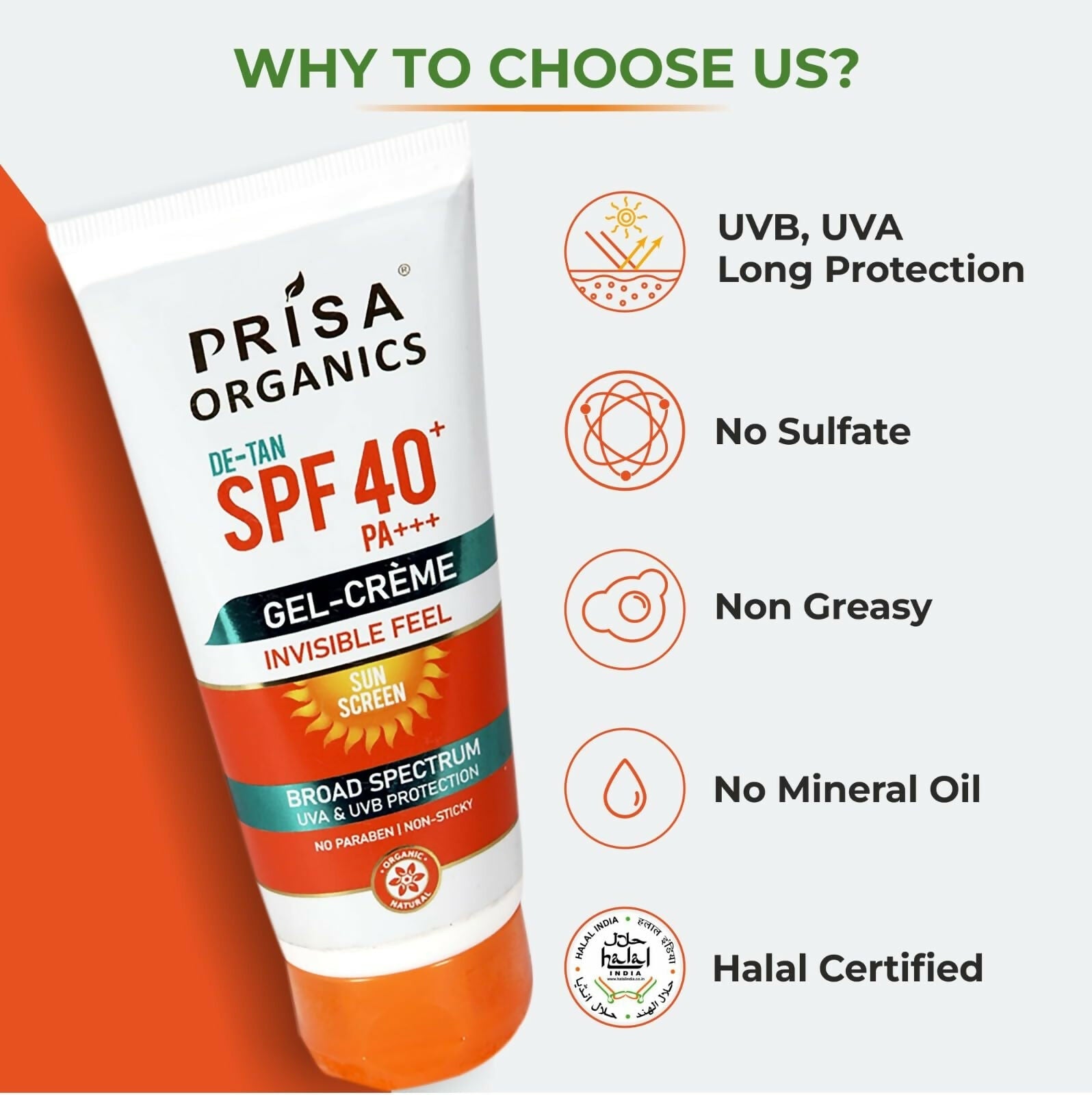 Prisa Organics De-Tan Sun Screen SPF 40 PA+++ Invisible Feel Gel Cream
