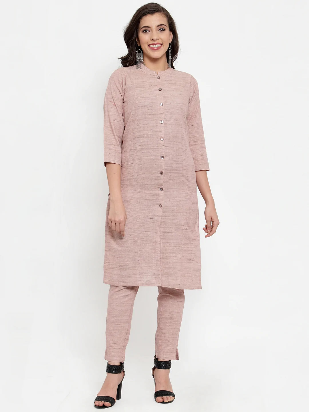 Women Pink Solid Kurta With Trousers & Dupatta - Rasiya