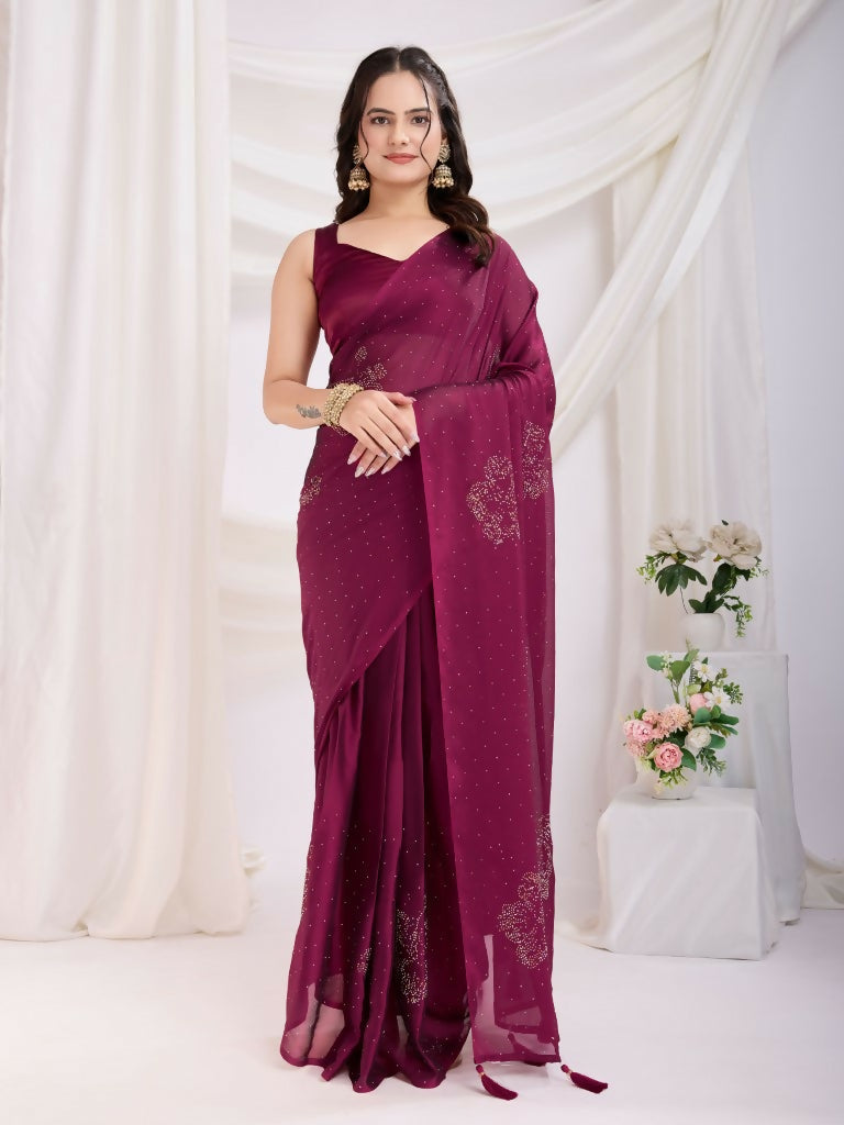 Maroon Rangoli Silk Diamond Work Ready To Wear Saree - Tamana